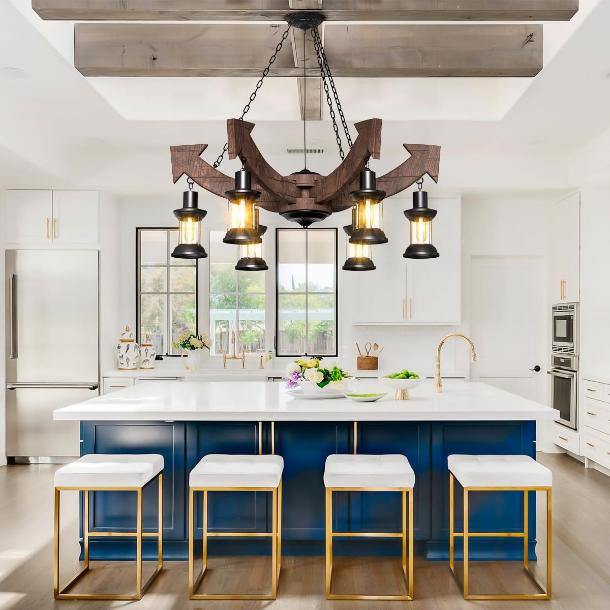 - French Country Style: Elevate your space with the timeless charm of this French country chandelier, featuring exquisite craftsmanship and a hand-made old-style design. The arrow-style details and wooden elements give it a classic and retro allure.