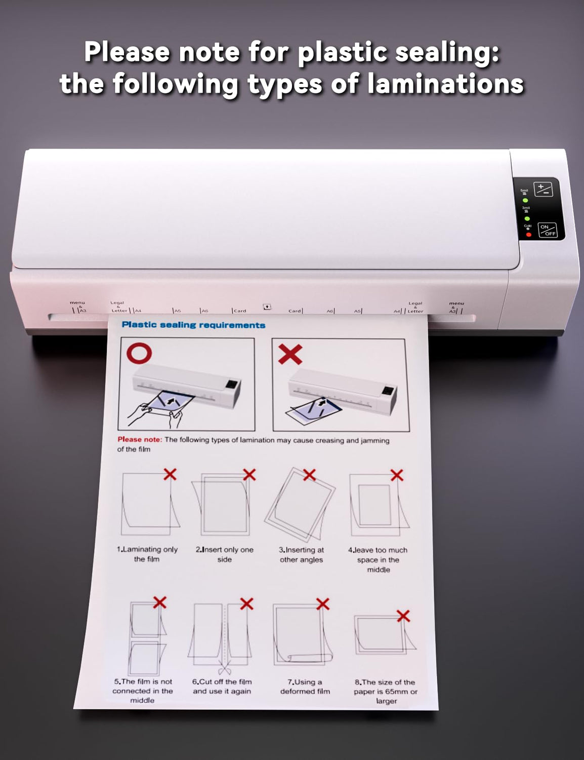 - 【Portable 13-inch Laminating Machine】: Our laminator machine with laminating sheets accommodates paper and photos of various sizes, from A3/A4/A5/A6. It's compatible with 3 mil and 5 mil laminating paper, including Legal-sized, letter, business card, and photo-sized paper. For optimal results, make sure to select pouches that are 3-5 mil (80–100 mic) thick