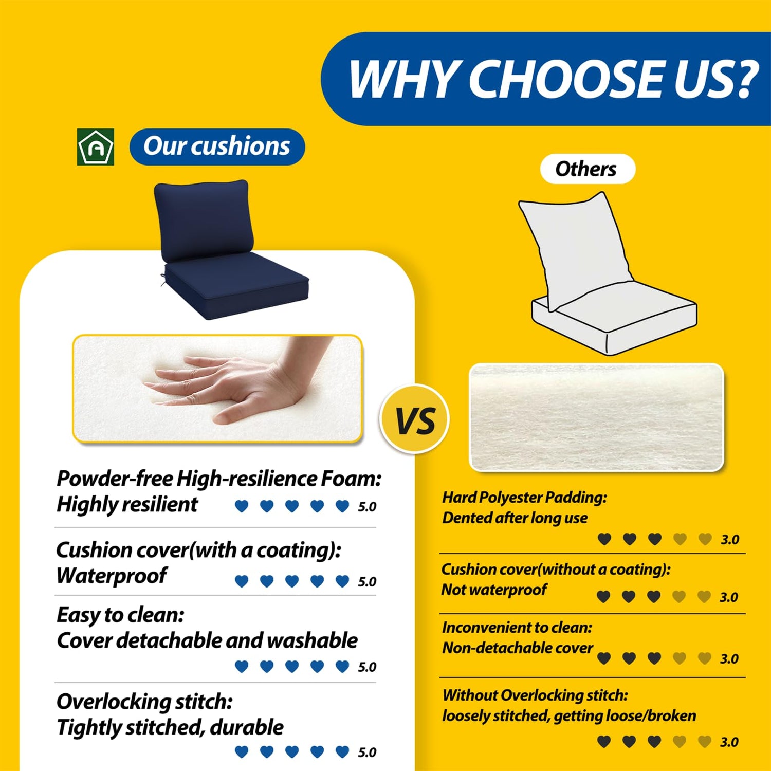 - Upgraded Cushion Foam: The thicker powderless high-resilience foam can quickly regain to its original shape after sitting for a long time and provide you with soft and comfortable using experience. This can not only effectively relieve the pressure on your body and enhance your comfort, but also make the chaise cushions more durable after long-term use