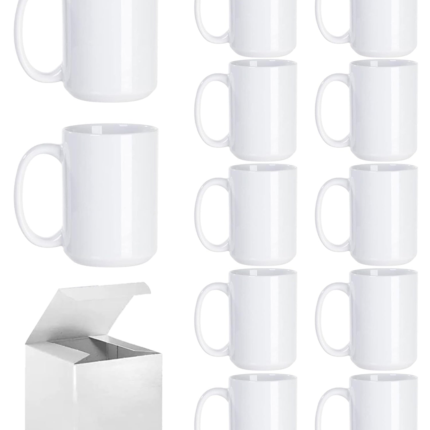 ABBSH Sublimation Coffee mugs, 15 oz White Coffee Mugs Tazas Para Sublimacion Cups With Box for Coffee, Soup, Tea, Milk, Latte, Hot Cocoa Set of 12