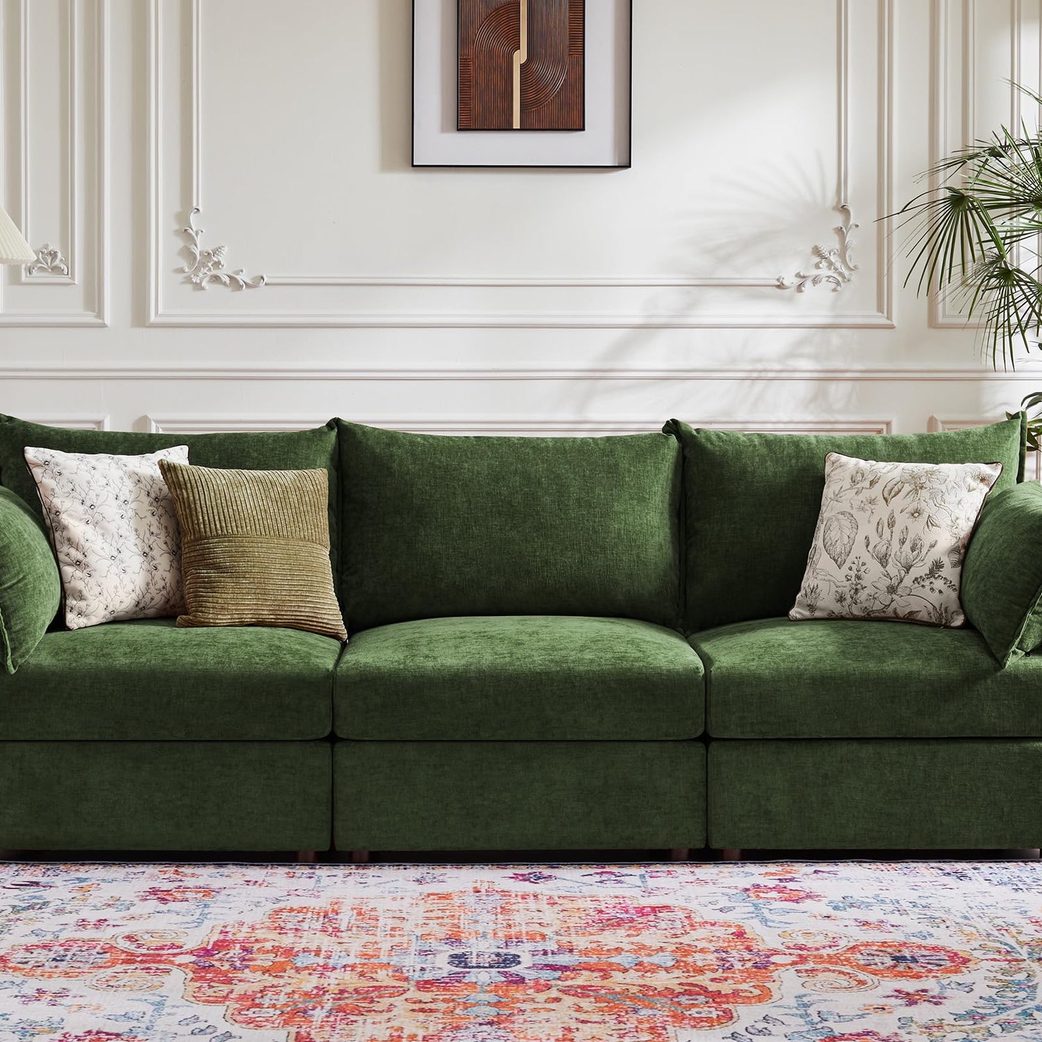 ABCASA 102.6" Modular Sectional Sofa, Oversized 3-Seater Green Couch with Removable Chenille Fabric Cover, Deep Seat & High Backrest for Living Room, Office & Apartment