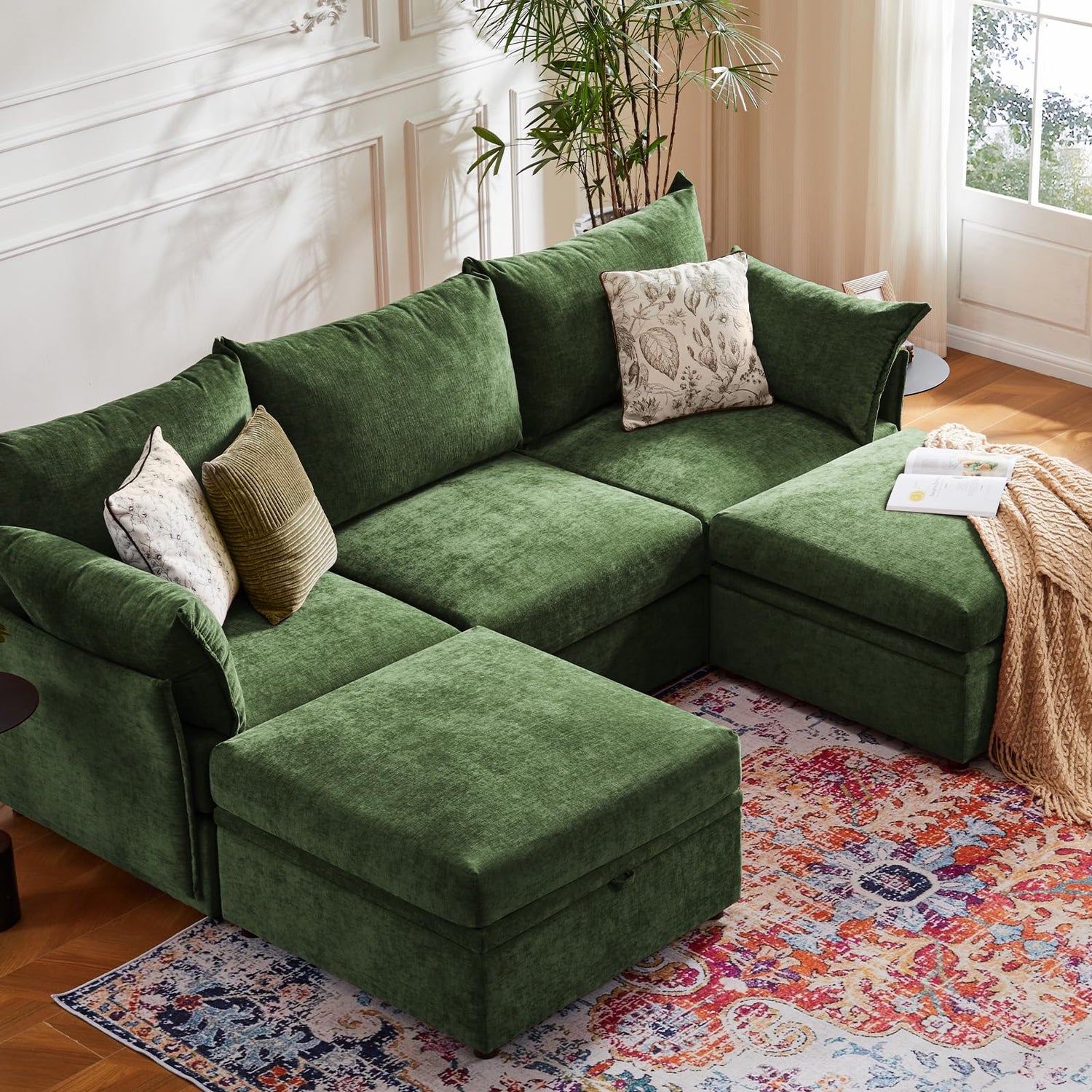 - 💡 Stylish and Spacious Sectional Sofa - A blend of modern elegance and comfort, this green sofa is ideal for contemporary interiors. Customize seating and shape by adding or removing modules to fit your needs. It's perfect for your living room, family room, bedroom, or office. Overall size: 102.6" W × 36.5" D × 36" H, seat width: 32", seat depth: 24.5".