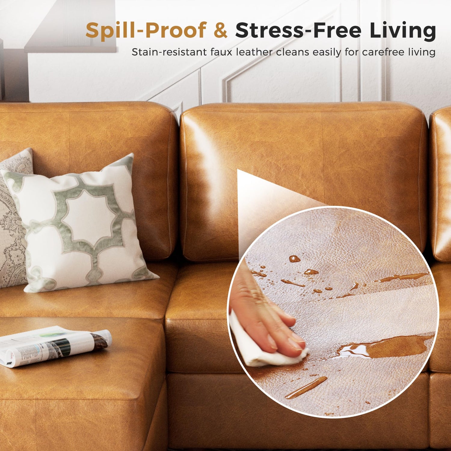 - ๐ Effortless-Clean Faux Leather Sofa: Waterproof and stain-resistant faux leather stays spotless. Wipe spills clean in 10 seconds with a damp cloth. The scratch-resistant textured surface feels soft and smooth, maintaining a stylish look even with pets and kids.