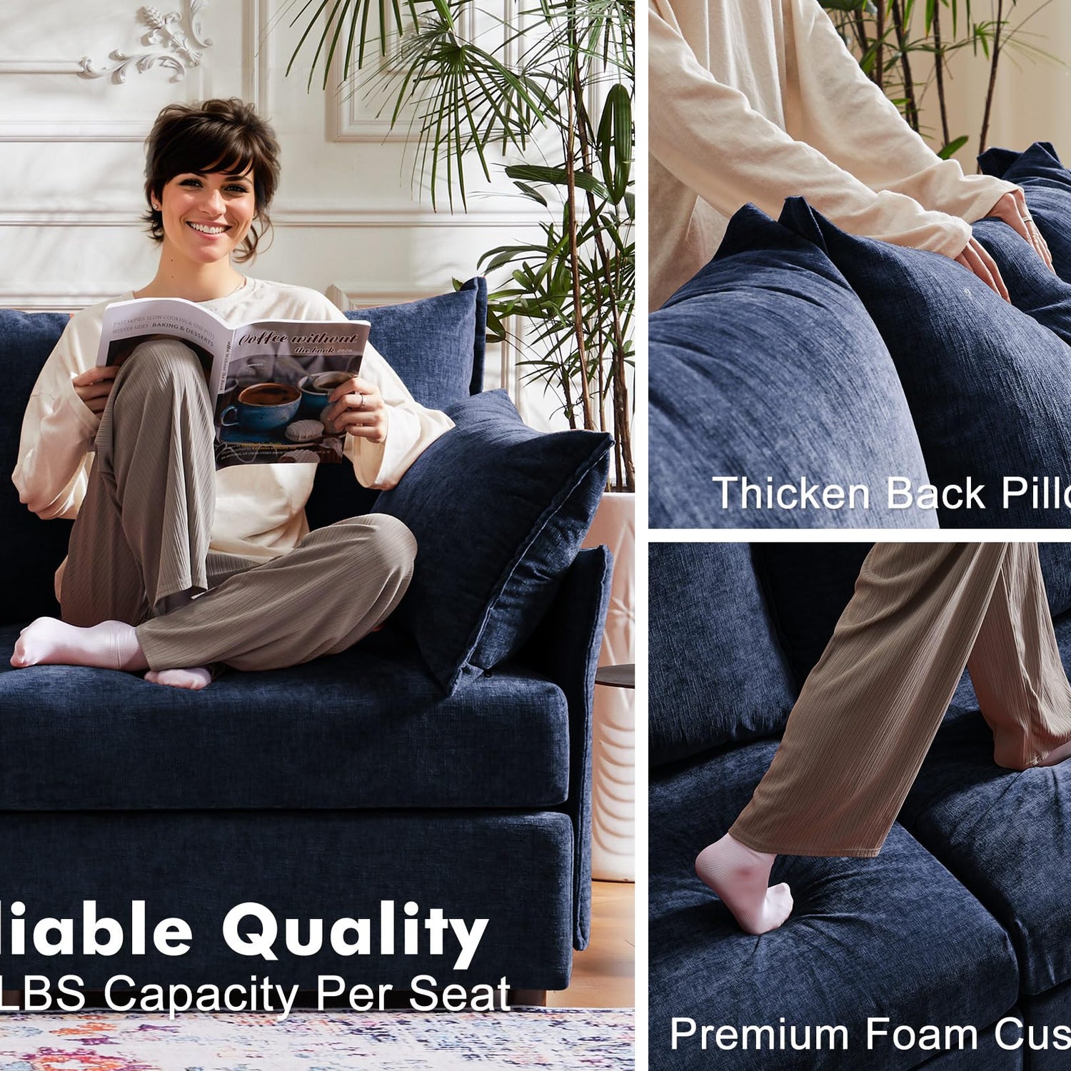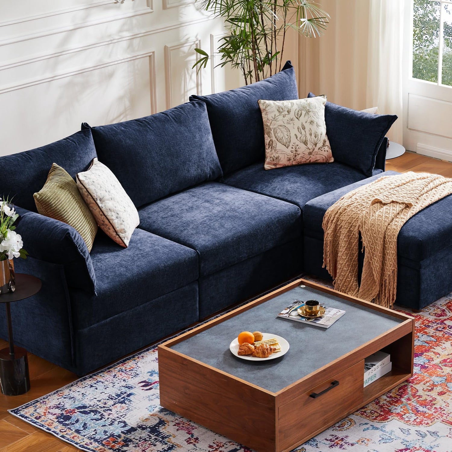 ABCASA Modular Sectional Sofa, L Shaped Couch Set for Living Room, 3-Seater Comfy Cloud Couches with Movable Storage Ottoman,DIY Combination,1400lb Capacity - Chenille Blue