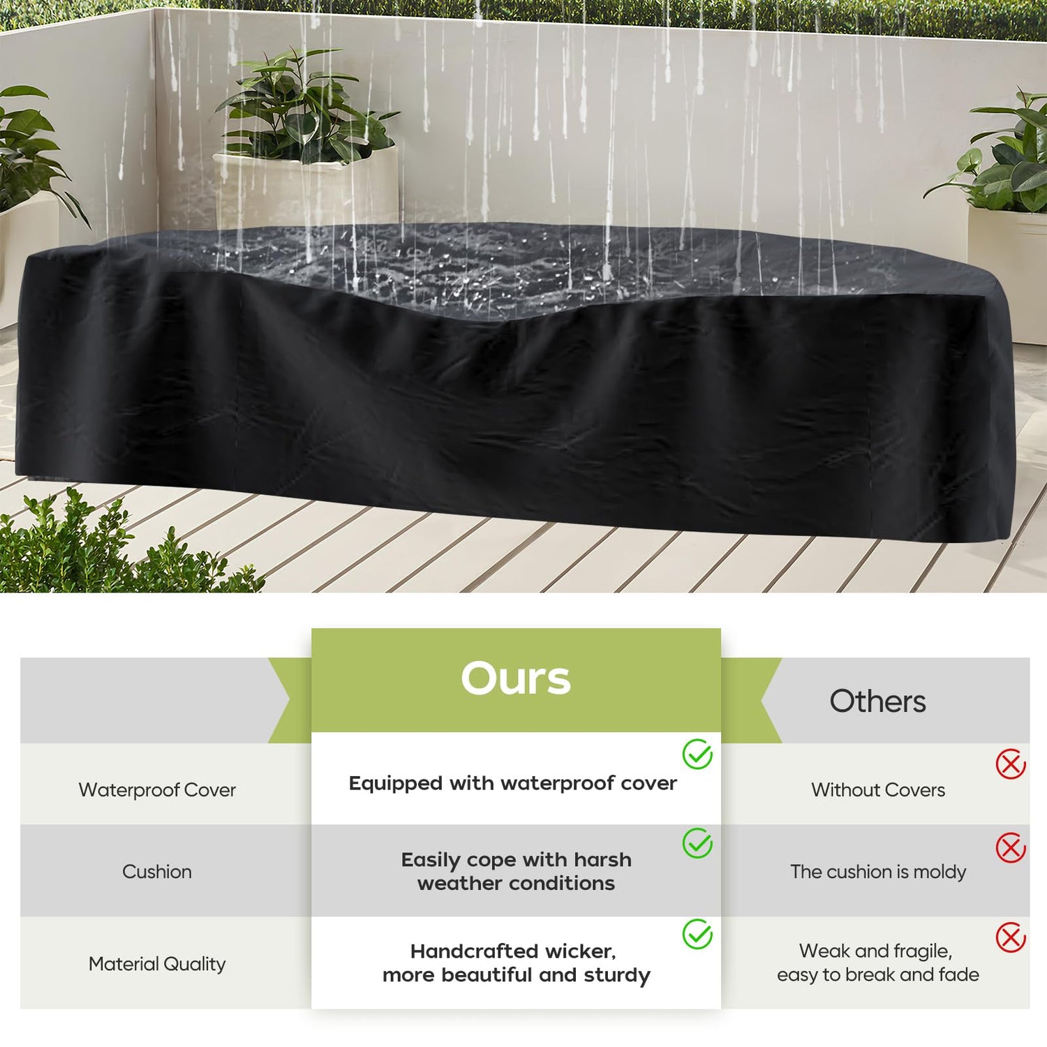 ABCASA Outdoor Patio Furniture Set with Coffee Table,11 Pieces Half-Moon Curved Outdoor Sectional Sofa and Side Table Waterproof Cover, Wicker Rattan Patio Coversation Set for Porch,Backyard(Grey)