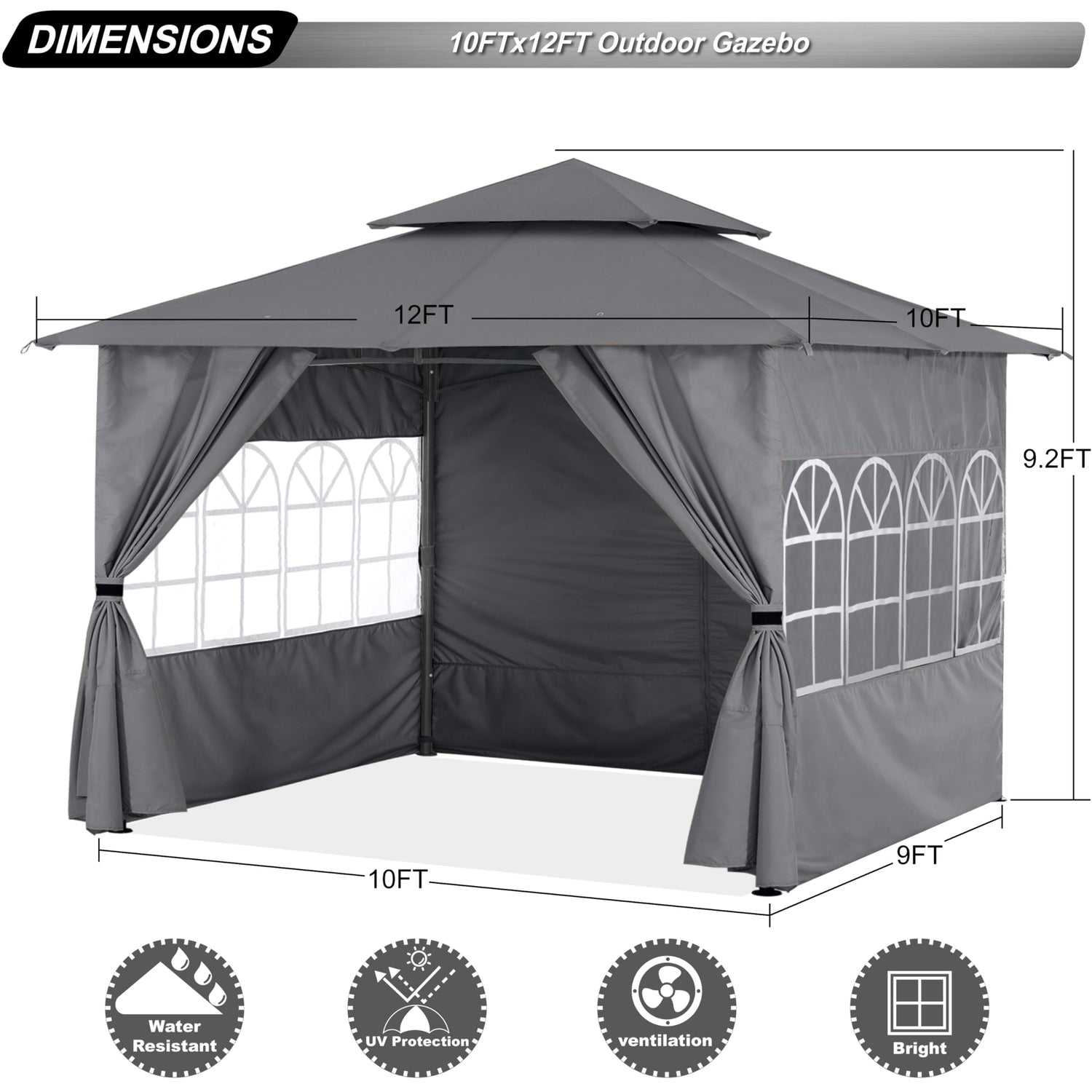 Details: ABCCANOPY 10x12 Outdoor Gazebo - Patio Screened Gazebo with Curtains and Windows for Deck, Lawn and Backyard (Dark Gray)