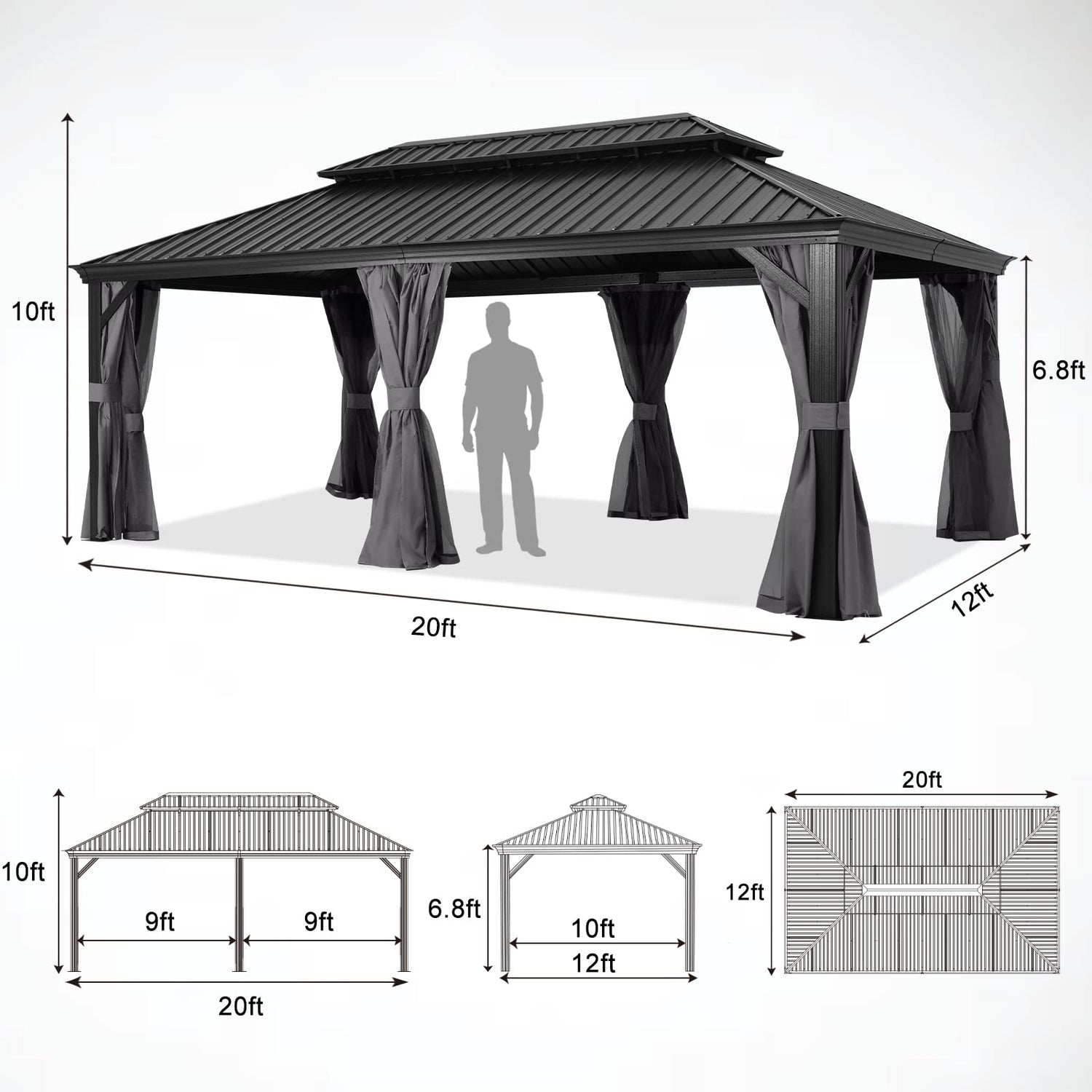 model number: Double Roof Hardtop Gazebo 12x20 Gray