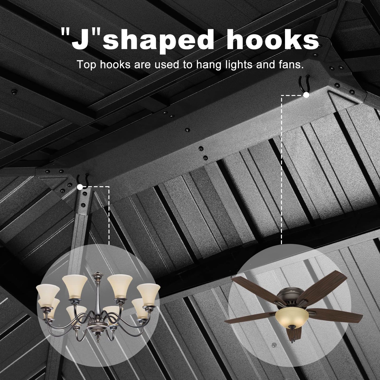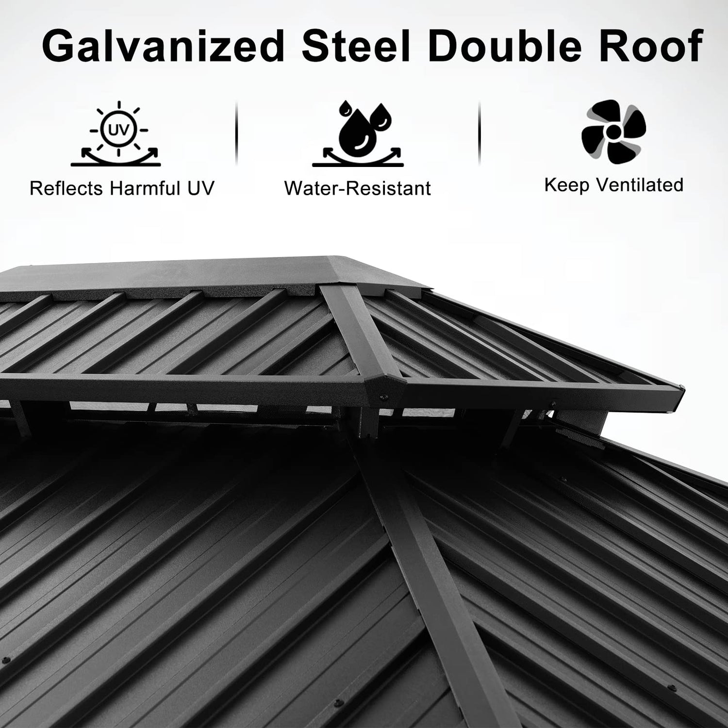 - ✅All-weather Galvanized Steel Roof: Compared to traditional fabric roofs or polycarbonate roofs, this superb and durable galvanized steel roof is suitable for all seasons and lasts longer. The metal roof is protected by high performance coating that prevents fading, rust and is sturdy to withstand wind, rain and snow, shielding you from the sun and harmful UV rays.