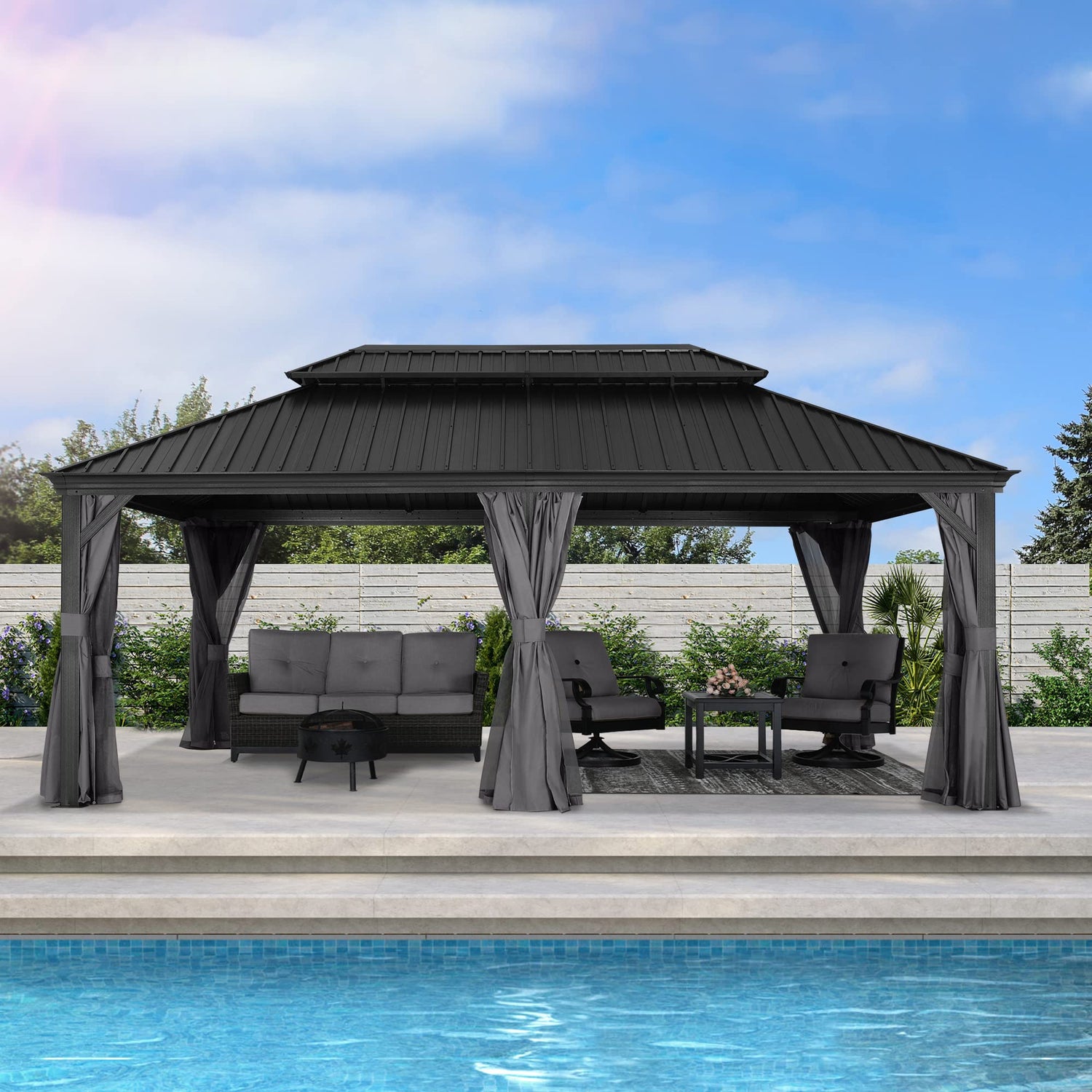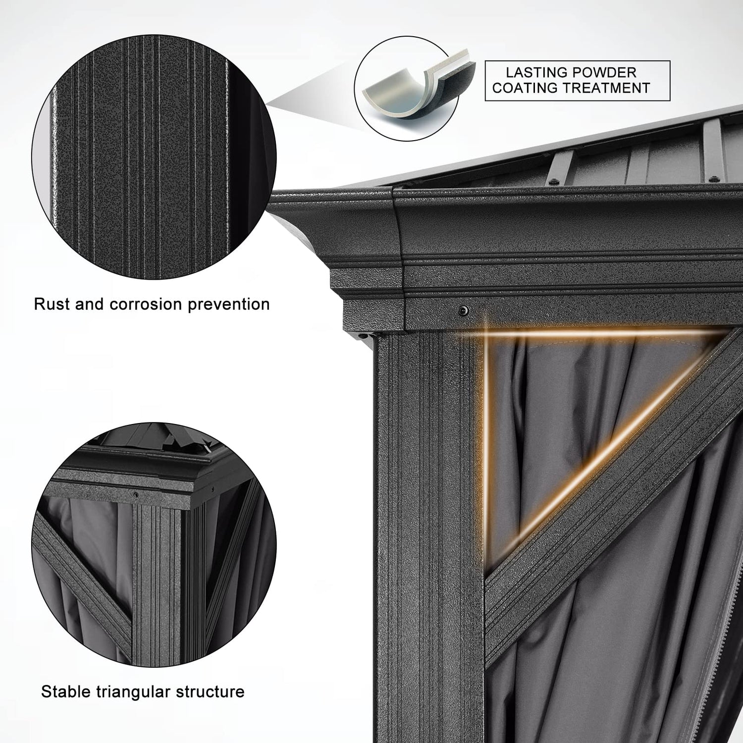 - ✅Flame Retardant Netting & Curtains: Our permanent hardtop gazebo features built-in dual track system and comes with removable zippered curtains and netting. Netting wall keeps a safe and comfortable environment for your family and children. Waterproof and fire-resistant curtains provide additional protection, including UV rays, rain and snow, while also enhancing privacy.