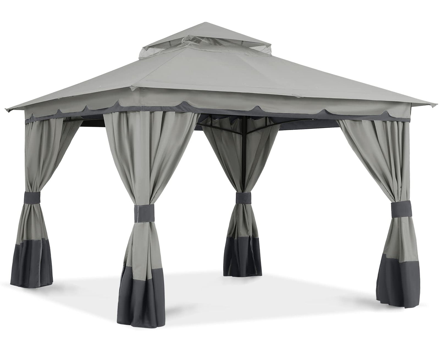 ABCCANOPY 8'x8' Outdoor Gazebo, Double Roof Patio Gazebo with and Shade Curtains, Light Gray