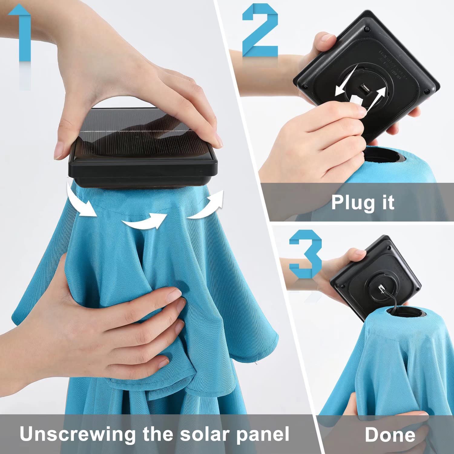 - ★ Hassle-free setup and storage with a detachable pole and crank handle; NOTICE: Please check the plug connection by unscrewing the solar panel before use, and the solar panel should be exposed to sun for 6-9 hours . If the light still not work, please contact us, we will solve this problem for you. Umbrella base not included