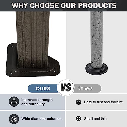 - ✅Stable Aluminum Gazebo Frame: Our gazebo frame are built from 3"x3" triangular aluminum posts, which are larger and stronger than regular post models. Finish with powder coating to prevent rust and corrosion. Secure the frame on the flat area with the pre-drilled post base with expansion screws can provide additional stability and safety.