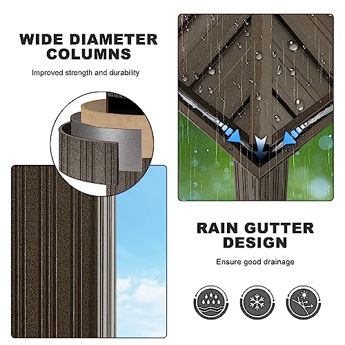 - ✅Water Drainage System: The unique water gutter design of the hardtop gazebo roof allows water to gather to the edge and flow to the ground through the aluminum post, which can reduce troubles and worries during the rainy or snow seasons.