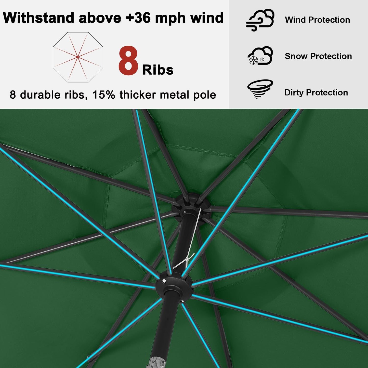 ABCCANOPY Patio Umbrella 10ft, Outdoor Table Umbrella with Push Button Tilt and Crank, 8 Ribs Umbrella for Patio Pool Garden Deck (Green)
