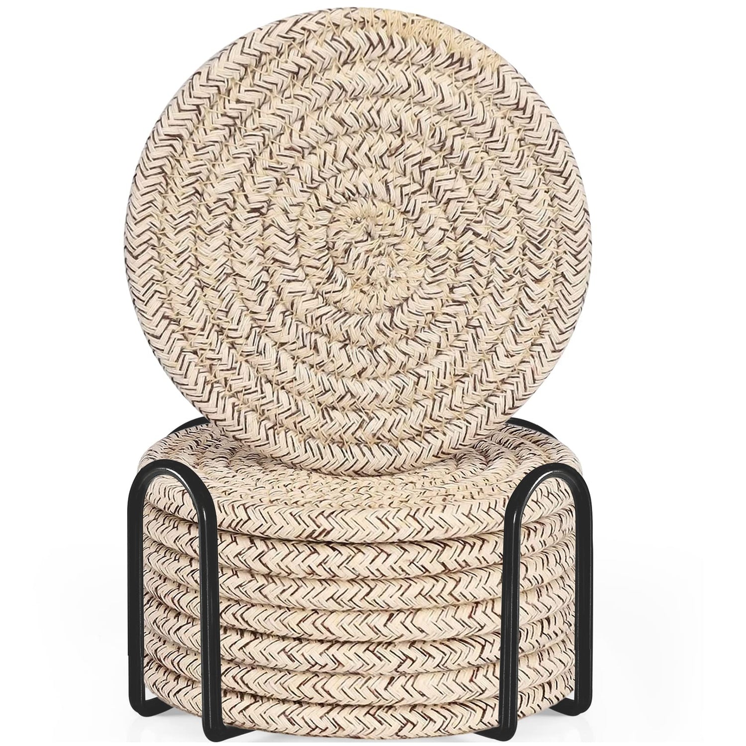 Details: ABenkle 4.3" Absorbent Coasters - Drinking Coasters Set of 8 Rope Braided Woven Thick Coasters for Drinks Absorbent Heat Resistant