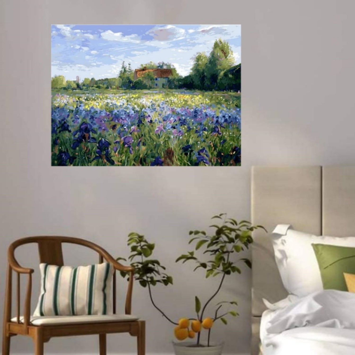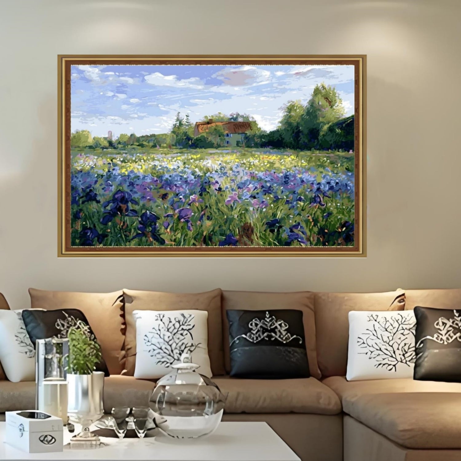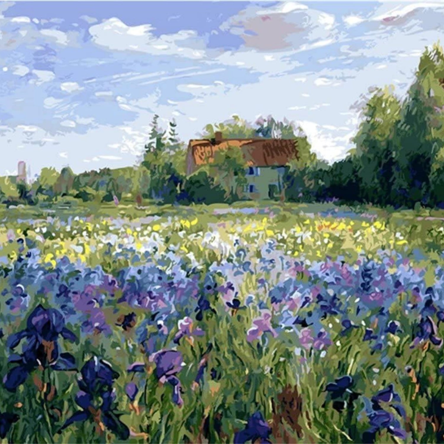 ABEUTY DIY Paint by Numbers for Adults Beginner, Purple Flower Rural Cabin Landscape 16x20 inches Number Painting Home Decoration Crafts (No Frame)