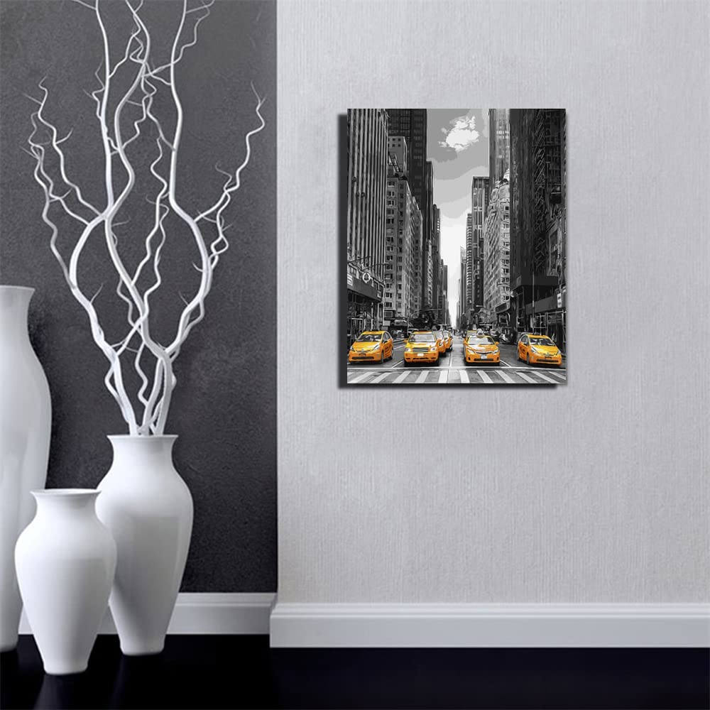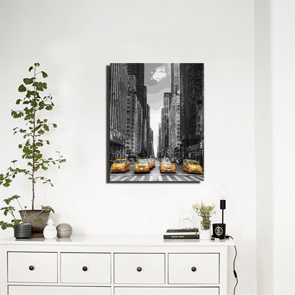ABEUTY DIY Paint by Numbers for Adults Beginner, Yellow Car Street 16x20 inches Fun DIY Adult Arts and Crafts Kits (No Frame)