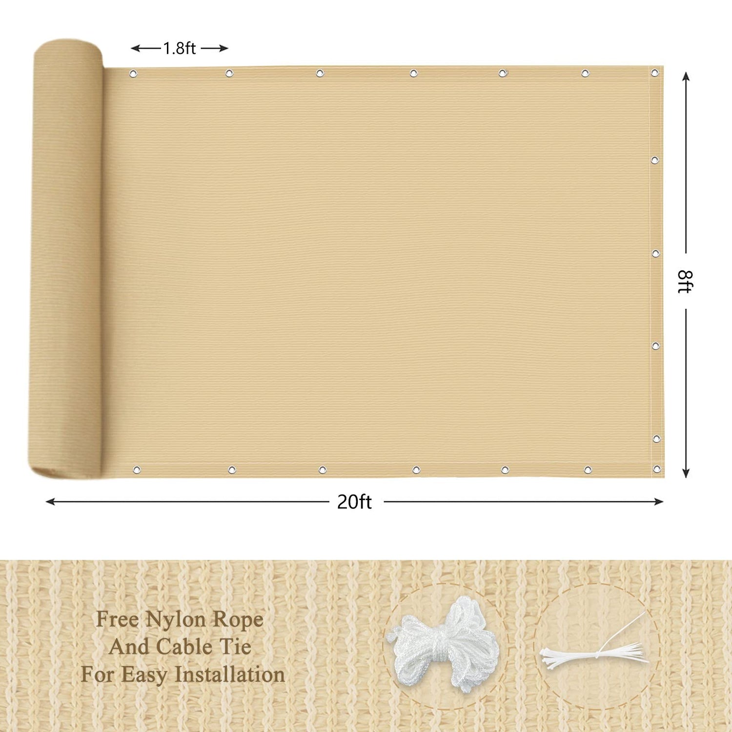 ABOSUN Outdoor Sun Shade Cloth, 8’ x 20’, Pergola, Deck, and Backyard Patio Sunshade with UV Protection, Heat Resistant HDPE Material, Reinforced Grommets (8x20 FT,Wheat)