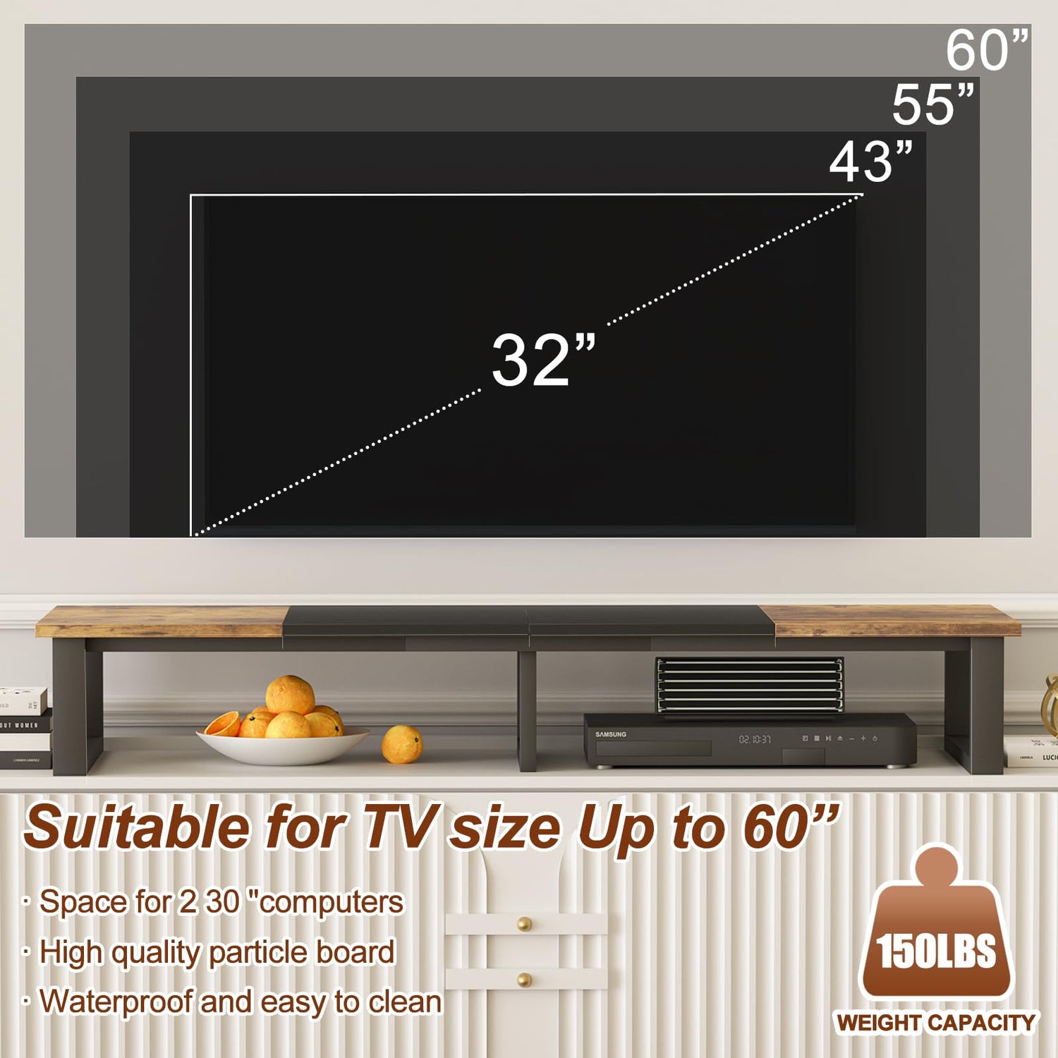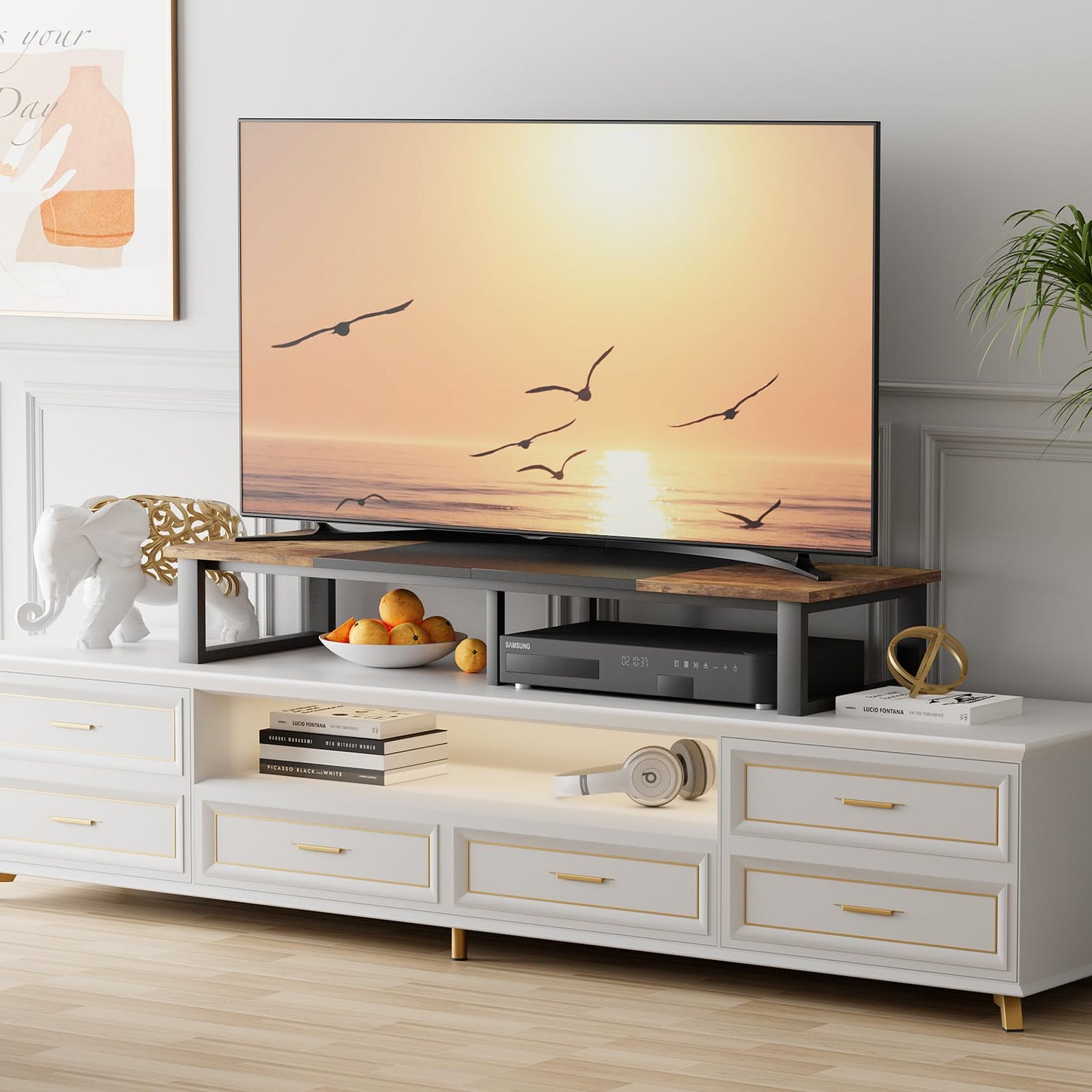 aboxoo 47" Large TV Riser for 32-60 inch TV, TV Riser Stand Shelf with Steel Legs,Tabletop TV Stand Riser for Home Office,Multi-Purpose Desktop Storage Stand for Computer,TV(Rustic Brown & Black)