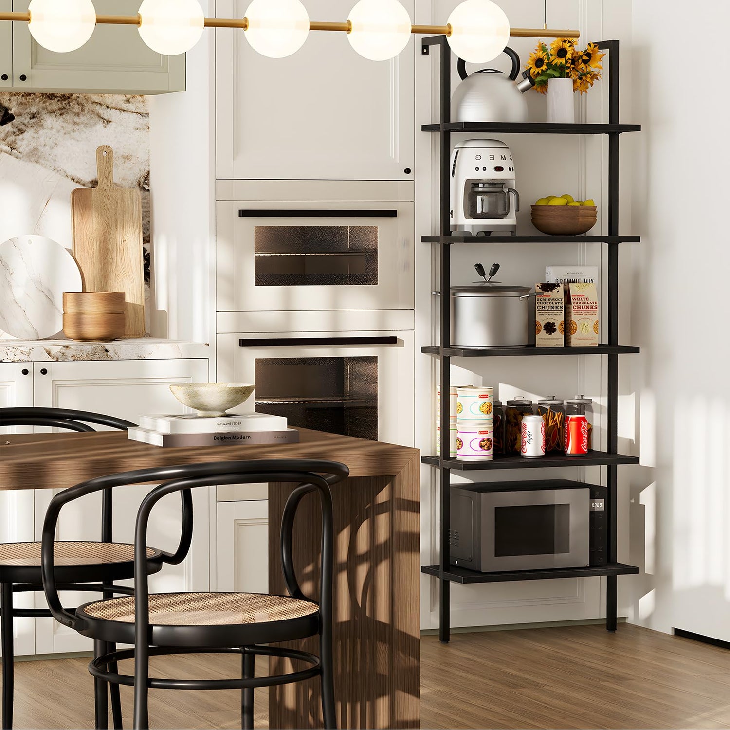 - ✔MINIMALIST & PRACTICAL DESIGN: The 5 tiers storage rack would provide you with the best user experience by combining minimalist and practical design with a vintage appearance. Upgraded your room as charming as it's practical.