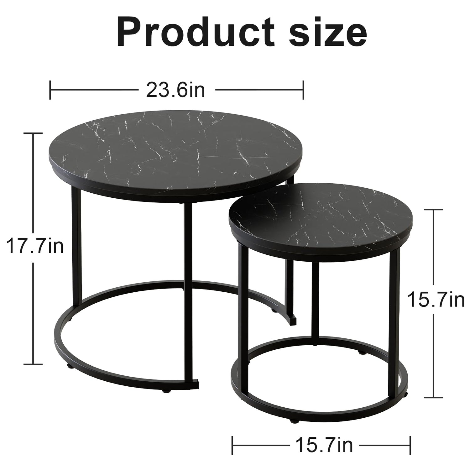 - ✔DIMENSION DETAILS This modern and fashionable nesting table is composed of two round tables.The size of the large table is 23.6*17.7, and the size of the small table is 15.7*15.7IN.