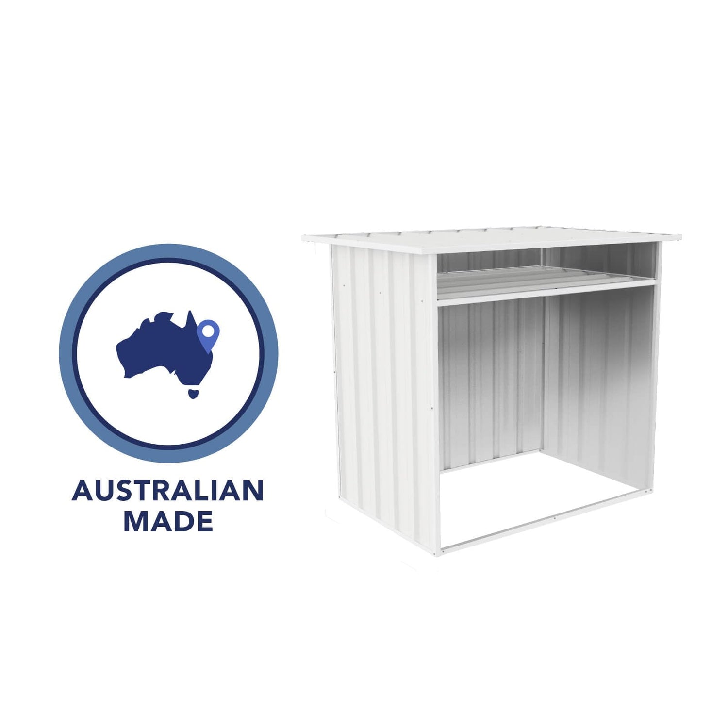 - 4' x 2.5' METAL WOODSTORE SHED: Offers convenient, compact outdoor storage structure designed for the storage of firewood, with an inbuilt shelf perfect for smaller pieces timber or kindling