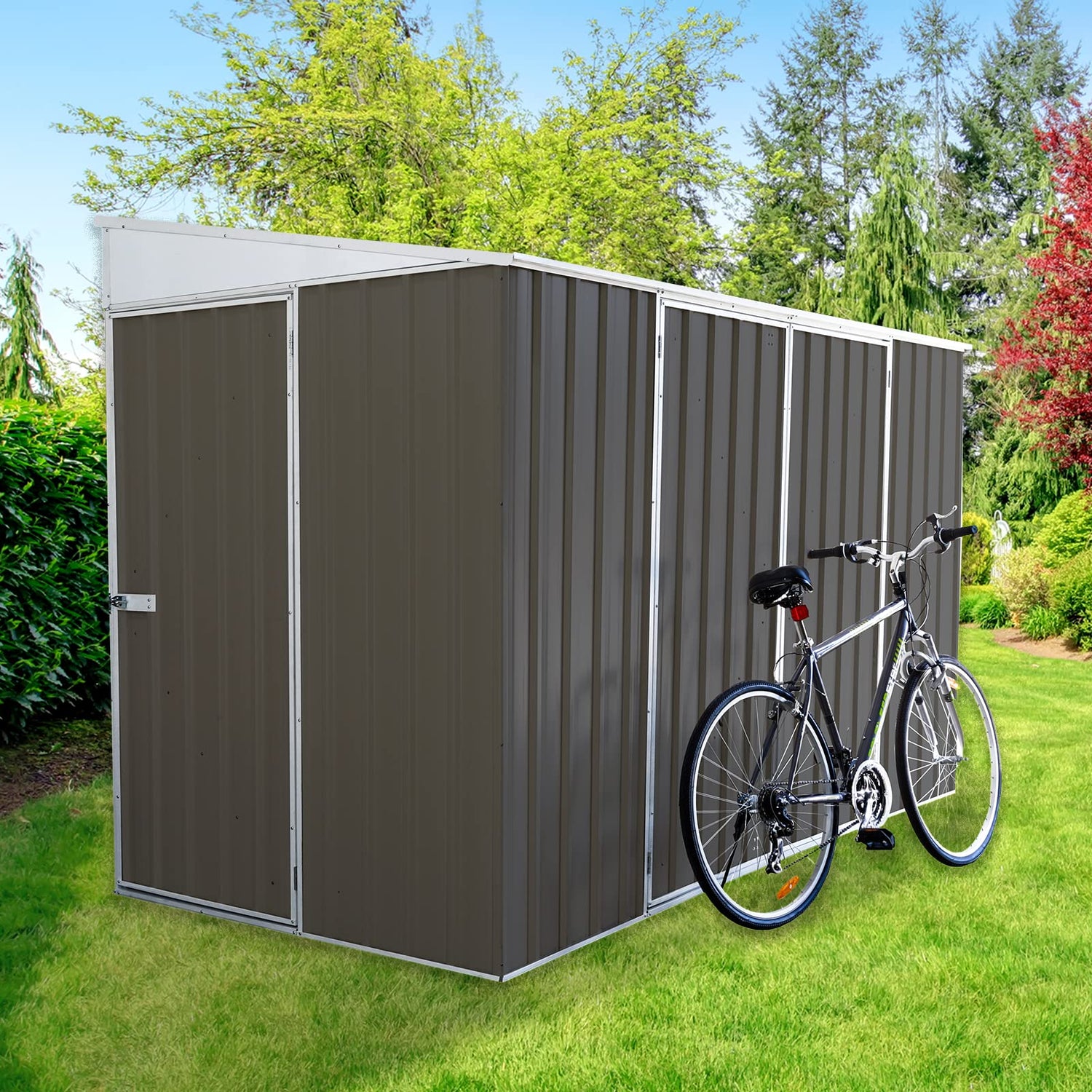 ABSCO Lean to 10 x 5 Ft. Metal Bike Shed, Aluminum and Steel Utility Tool Shed, Outdoor Storage for Backyard, Lawn, Bikes, 50 Sq. Ft., Woodland Gray