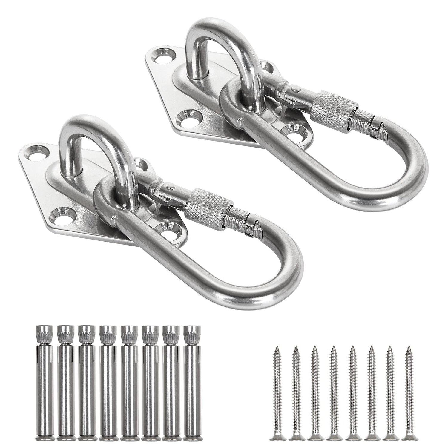- PACKAGE INCLUDE: In the package, you can get 2 pcs hammock carabiner, 2 pcs spring snap hooks, 8 pcs screws and 8 pcs expansion anchor bolts. With all these can this hammock hanging kits meet your needs in hammock hanging