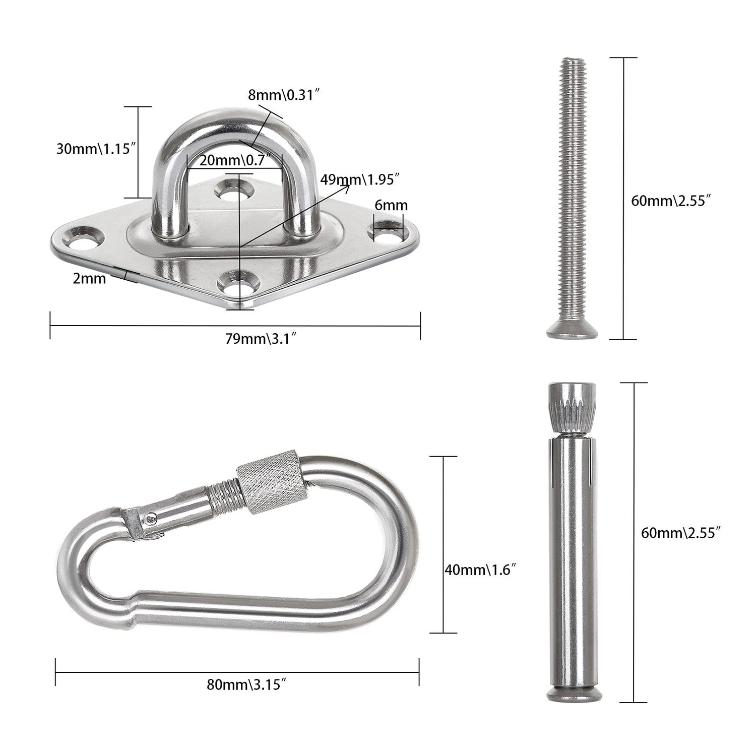 - HIGH GRADE MATERIAL: All the parts of the Hammock Hanging Kits, includes the screws, are made of the super quality stainless steel. Made of this durable material, the hammock hanging kits can service a long time