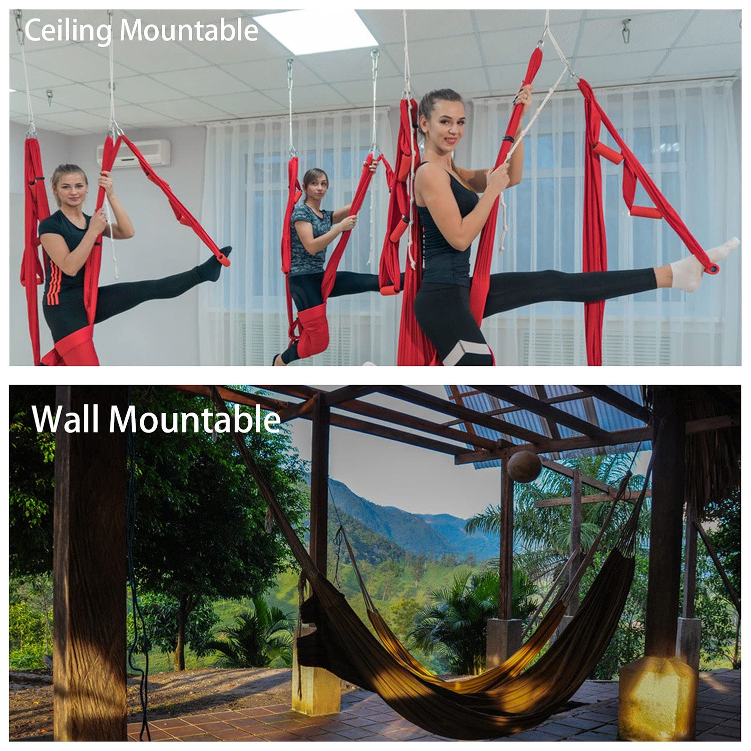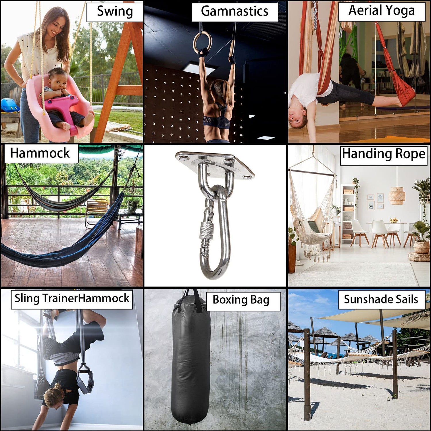 -The carabiner with locking function design make the hammock hanging kits ceiling mountable and wall mountable. Therefore, the kit can be used for swing, gymnastics, Aerial Yoga, hammock, handing rope, sling trainer hammock, boxing bags, sun shade sail and so on.