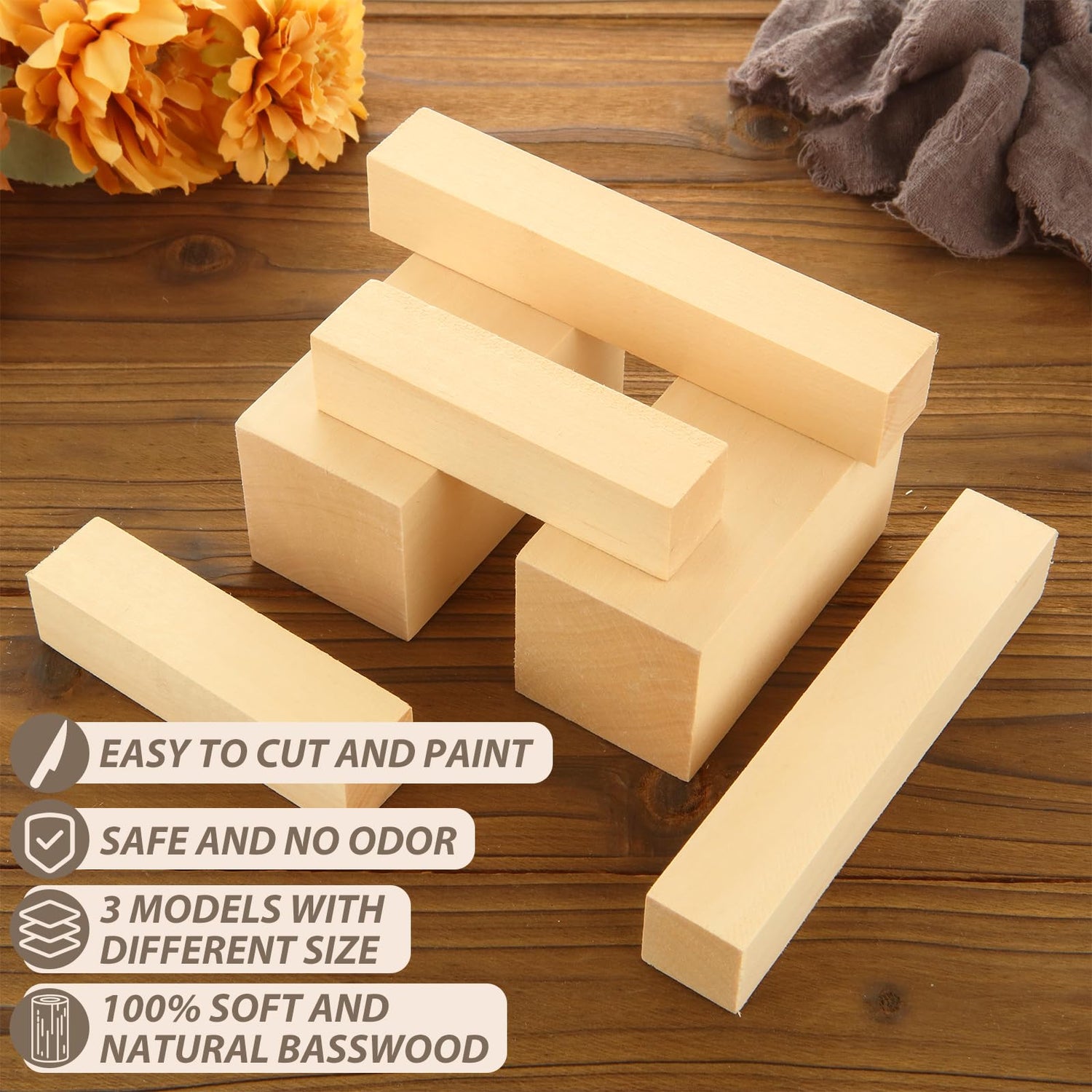 - PACKAGE CONTENT: You will get 24 PCS basswood carving blocks. featuring 3 different sizes for versatility. Include 12 rectangle blocks (1''x1''x6''), 4 cube blocks (2''x2''x4''), and 8 rectangle block (1''x1''x4'').Unfinished kiln dried whittling blocks, suitable for all ages, beginner to expert