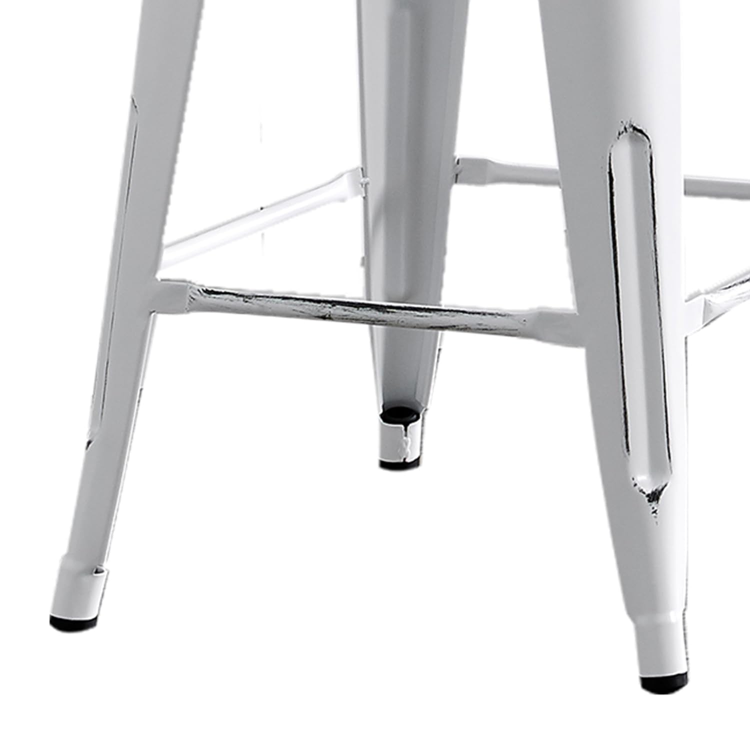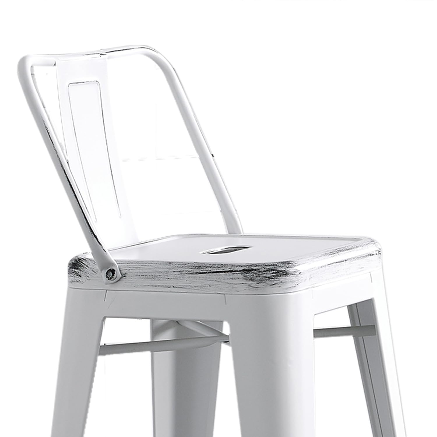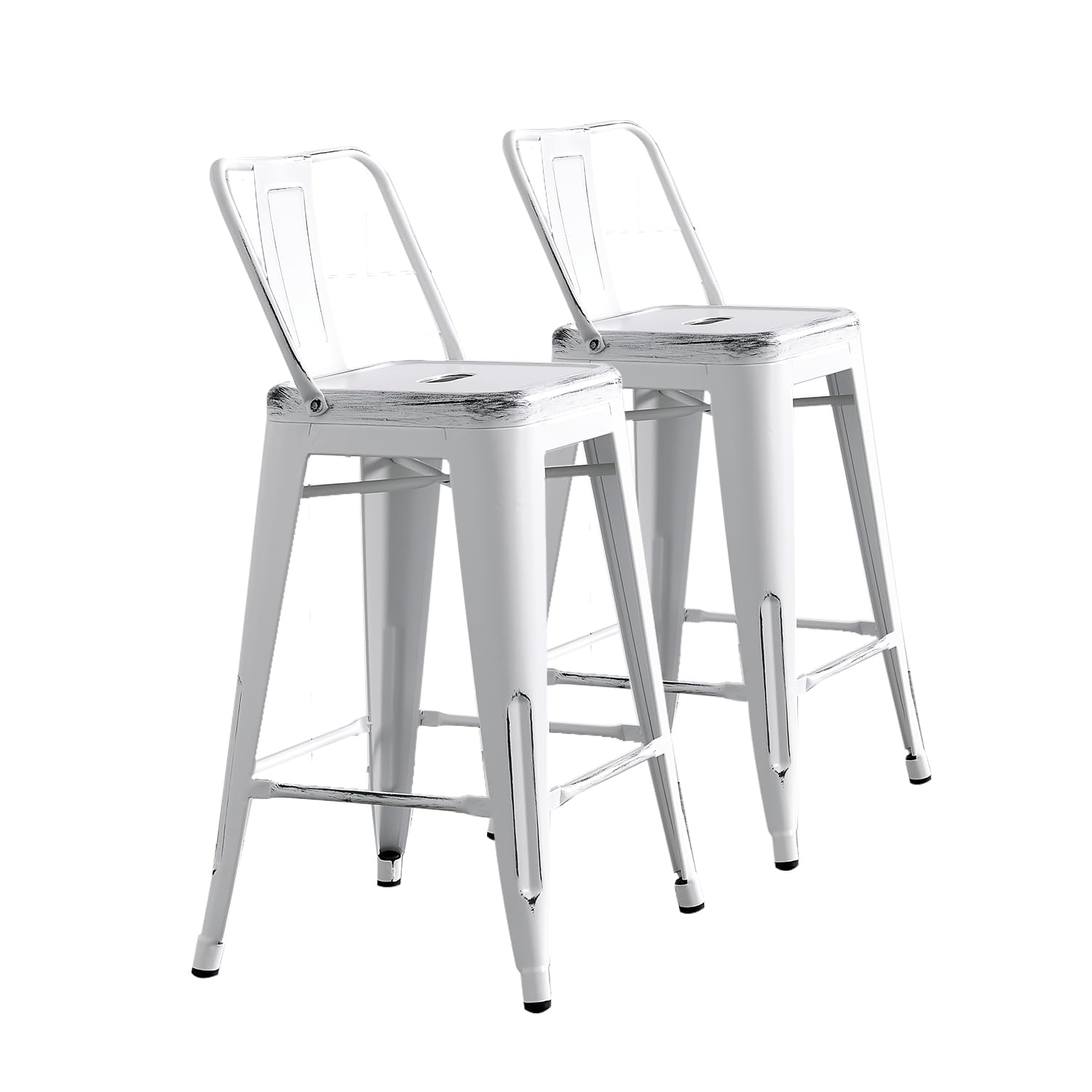 AC Pacific Modern 24” Metal Barstool Set of 2 – Country Rustic Style with Low Back, Lightweight & Sturdy Build, Easy Assembly, Distressed White