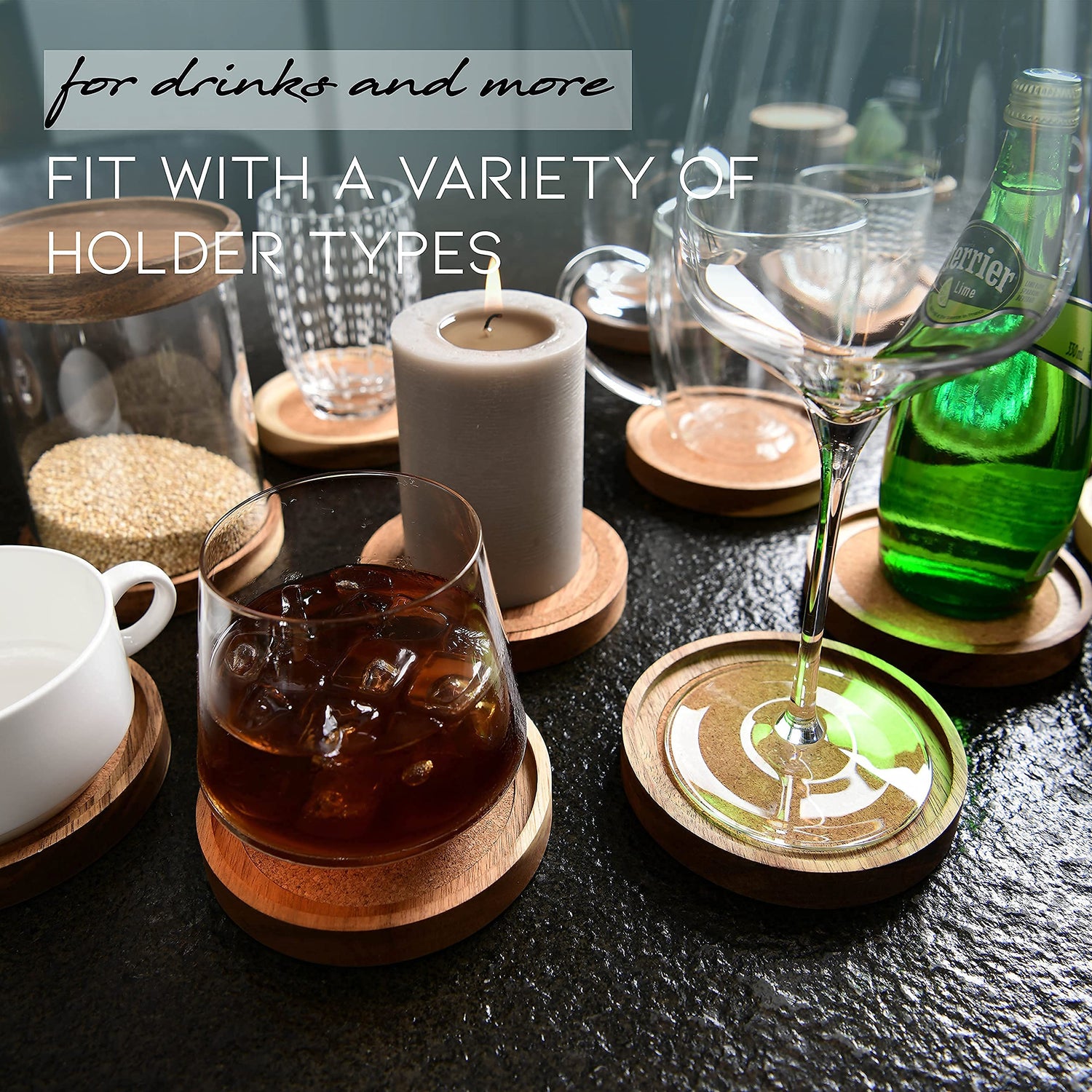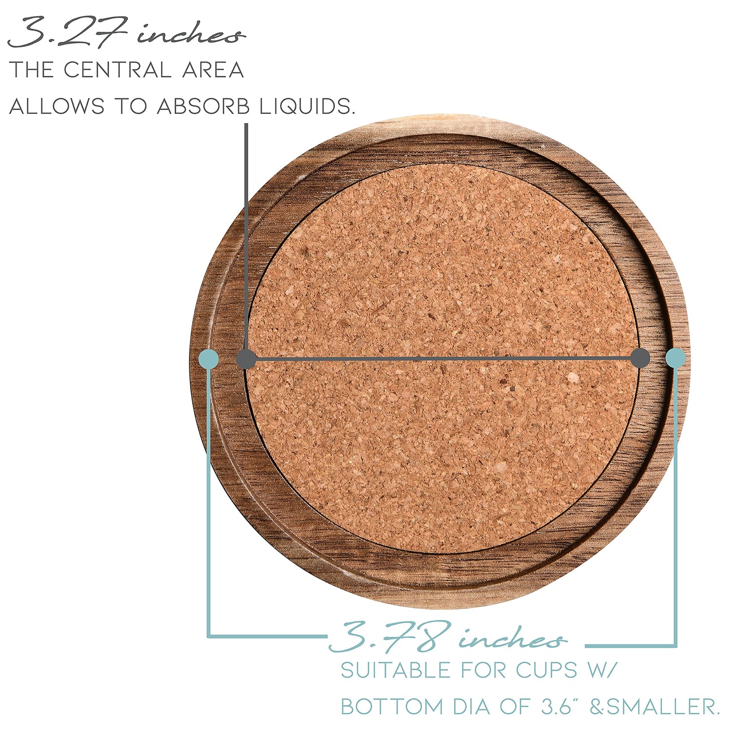 Acacia Wood Coasters for Drinks, 4.13 Inch, Set of 6, Absorbent and Insulation Cork Stackable Cup Holders, Rustic Coasters for Wooden Table, Designed by S1EGAN