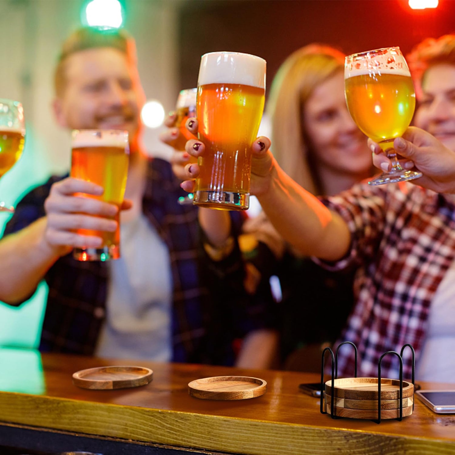 Acacia Wood Coasters for Drinks with Lip, Round Drink Coasters with Holder for Coffee Table Dining Table Wooden Table Coasters for Farmhouse Desk, Set of 6