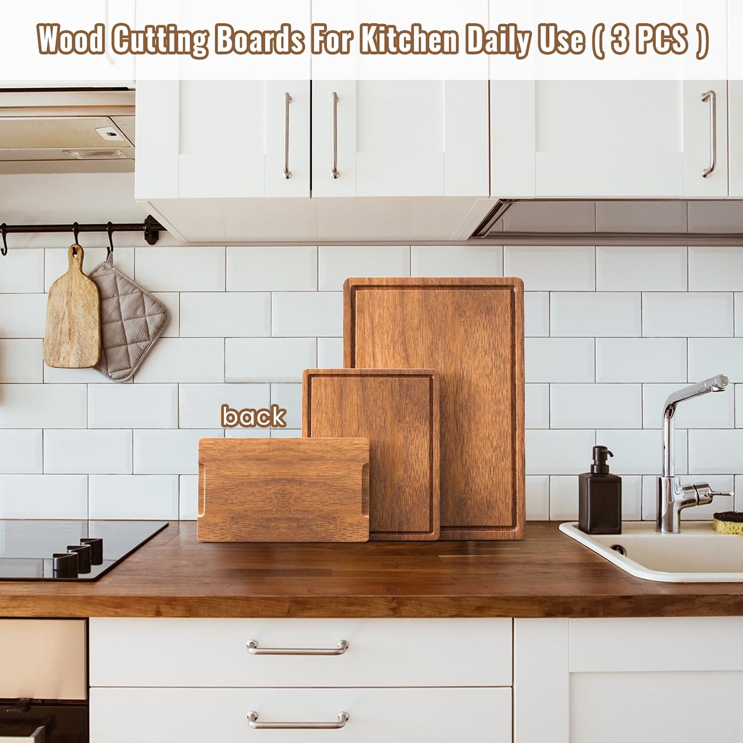 Acacia Wood Cutting Boards Set of 3 for Kitchen, Large Wooden Cutting Board with Juice Groove, Charcuterie Board, Chopping Board for Meat, Cheese, Fruits(17x12, 12x10, 12x7 inch)