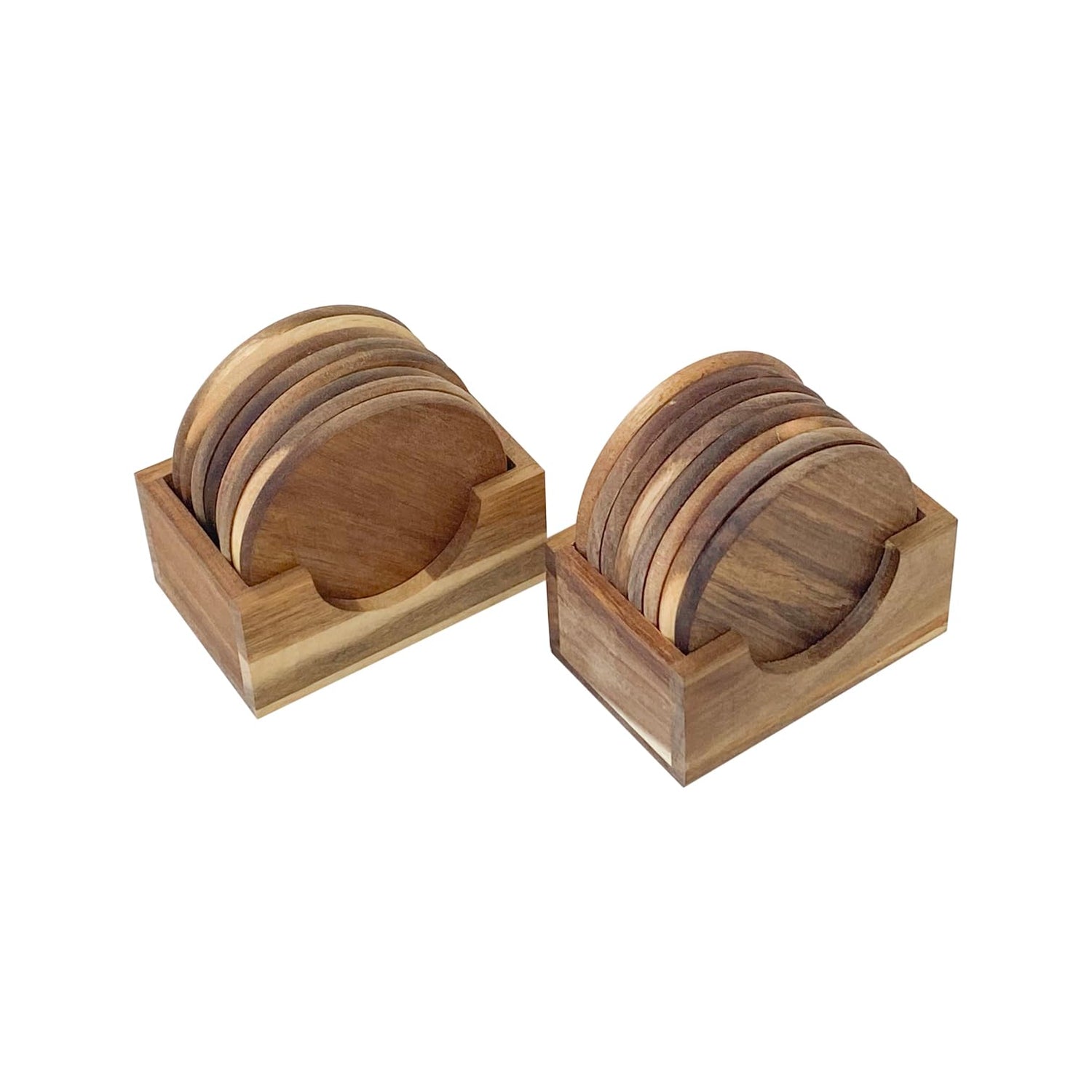 - What‘s including: Two sets of 8 pieces round wood coasters with holder