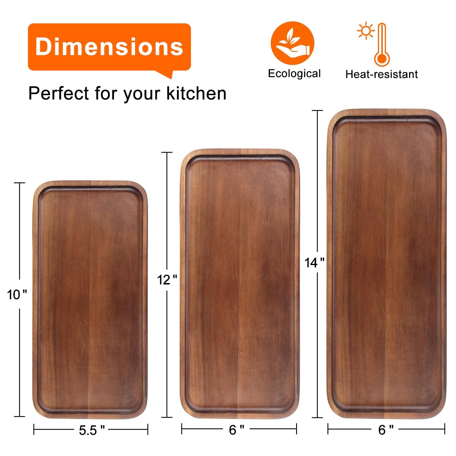 - Healthy Wood: These platters are made of acacia wood which is a beautiful hardwood that looks good in both elegant and casual situations. No glue, PVC or toxic finishes.
