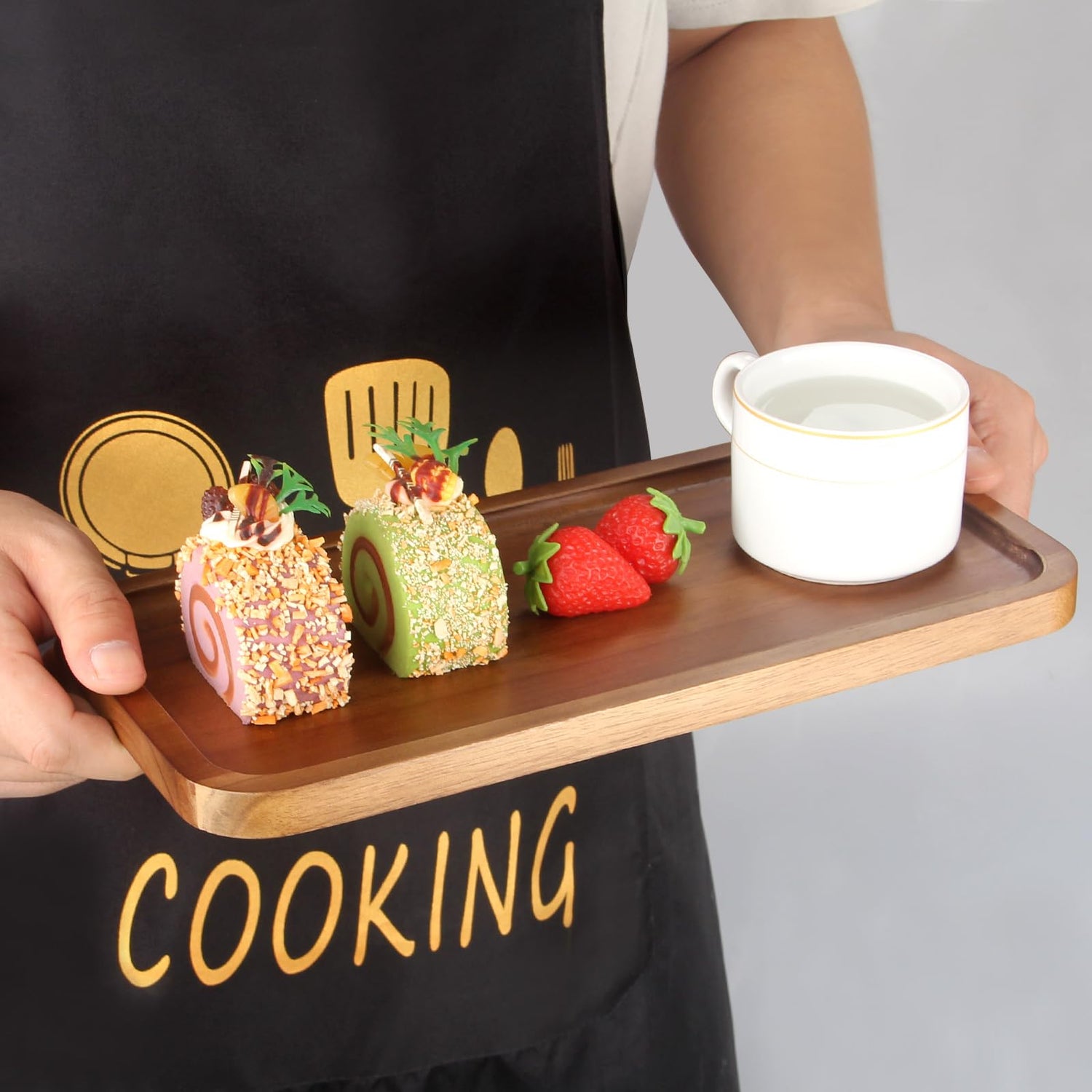 Acacia Wood Platters Small 12"x6" Long Charcuterie Board Rectangle Decorative Tray Wooden Serving Platter for Food Appetizer Cake Plates Kitchen Dish Cheese Boards Rectangular Snack Dessert Trays