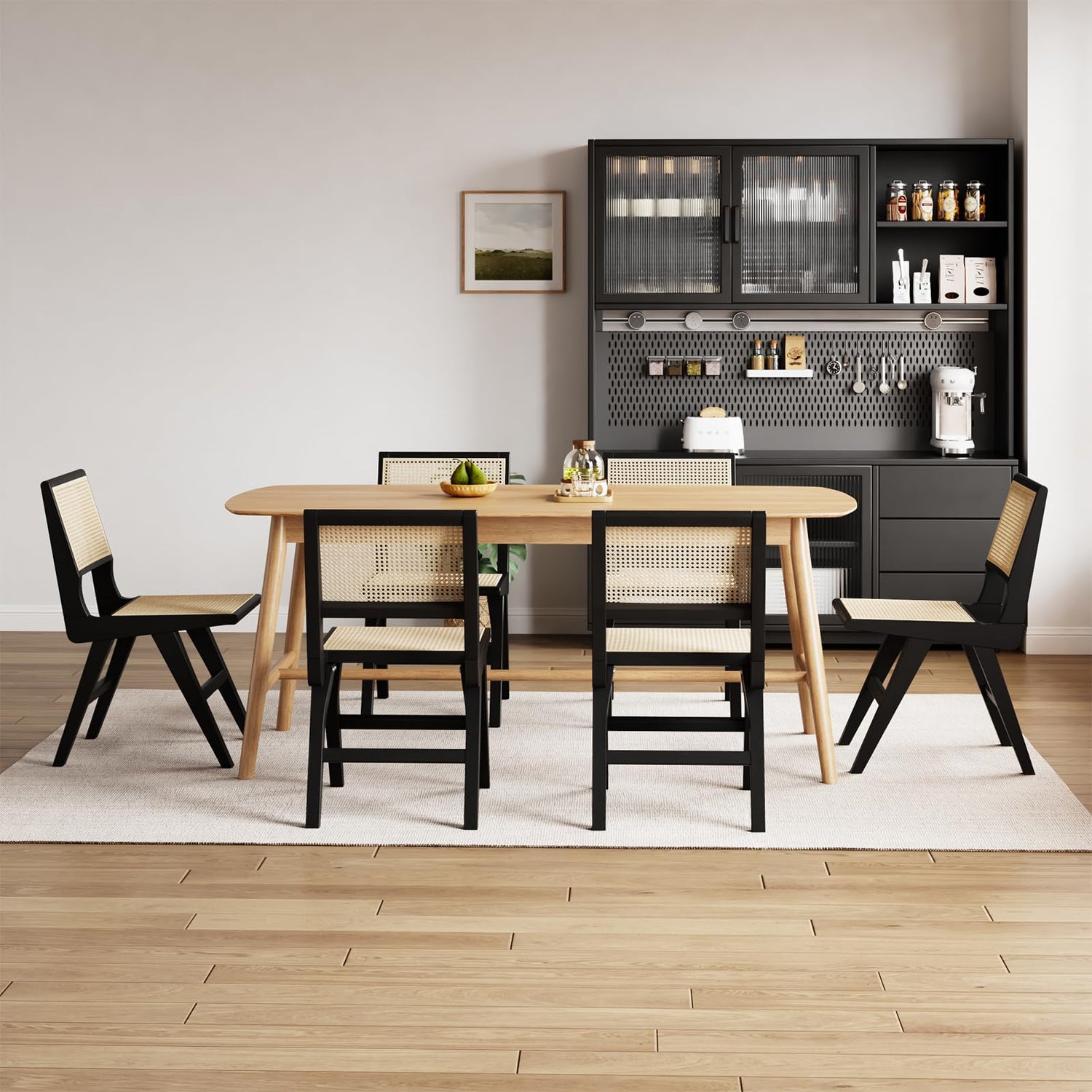 Details: Mid Century Modern Dining Chairs Set of 2, Solid Wood Frame Natural Accent Chairs with Natural Rattan Back&Base, Rattan Accent Chairs for Living Room Bedroom Dining Room Kitchen(Black)