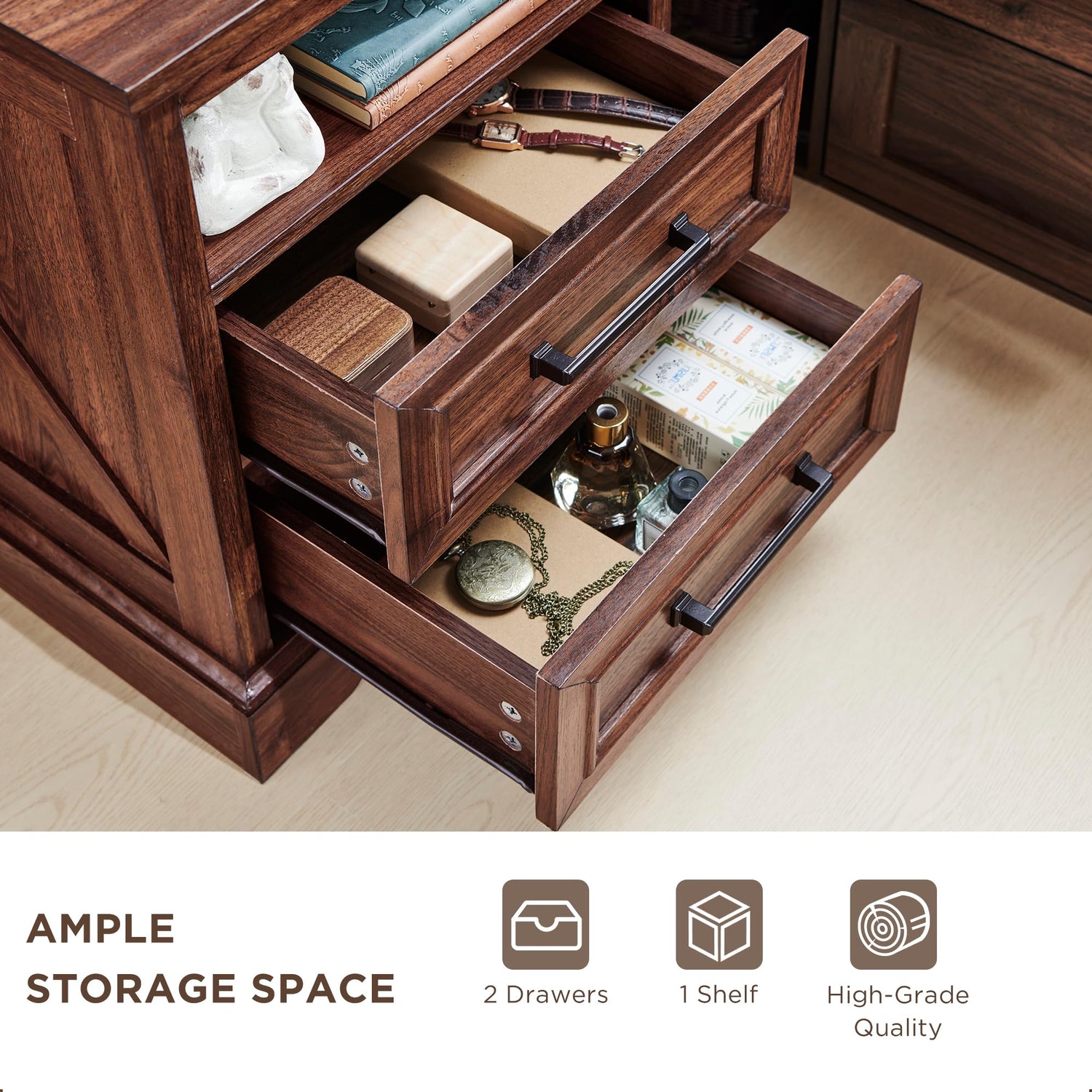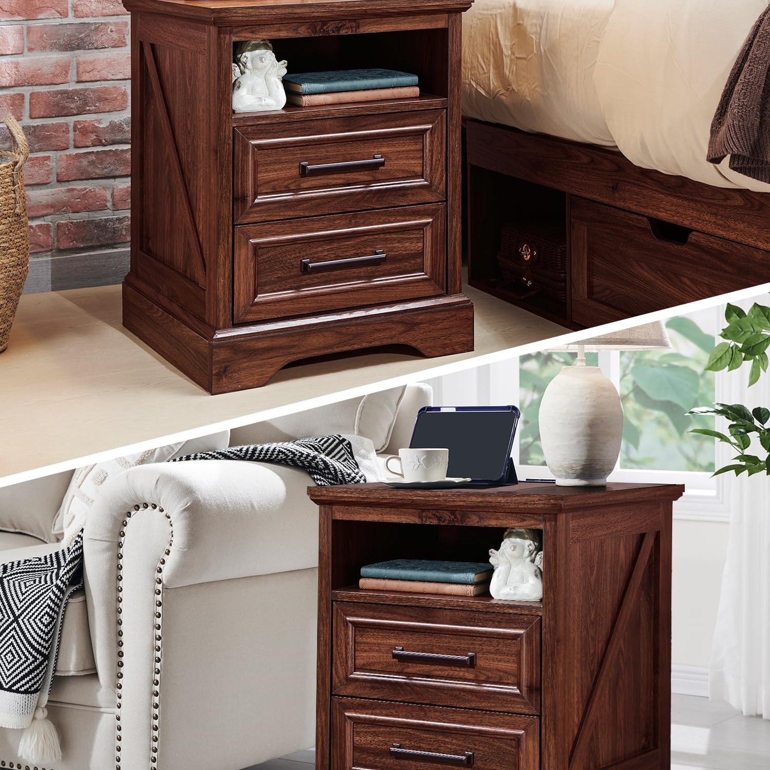 ACCOHOHO 18" Farmhouse Nightstand with Charging Station,End Table with 2 Drawers Storage,Side Table,Bedside Cabinet for Bedroom,Living Room,Brown