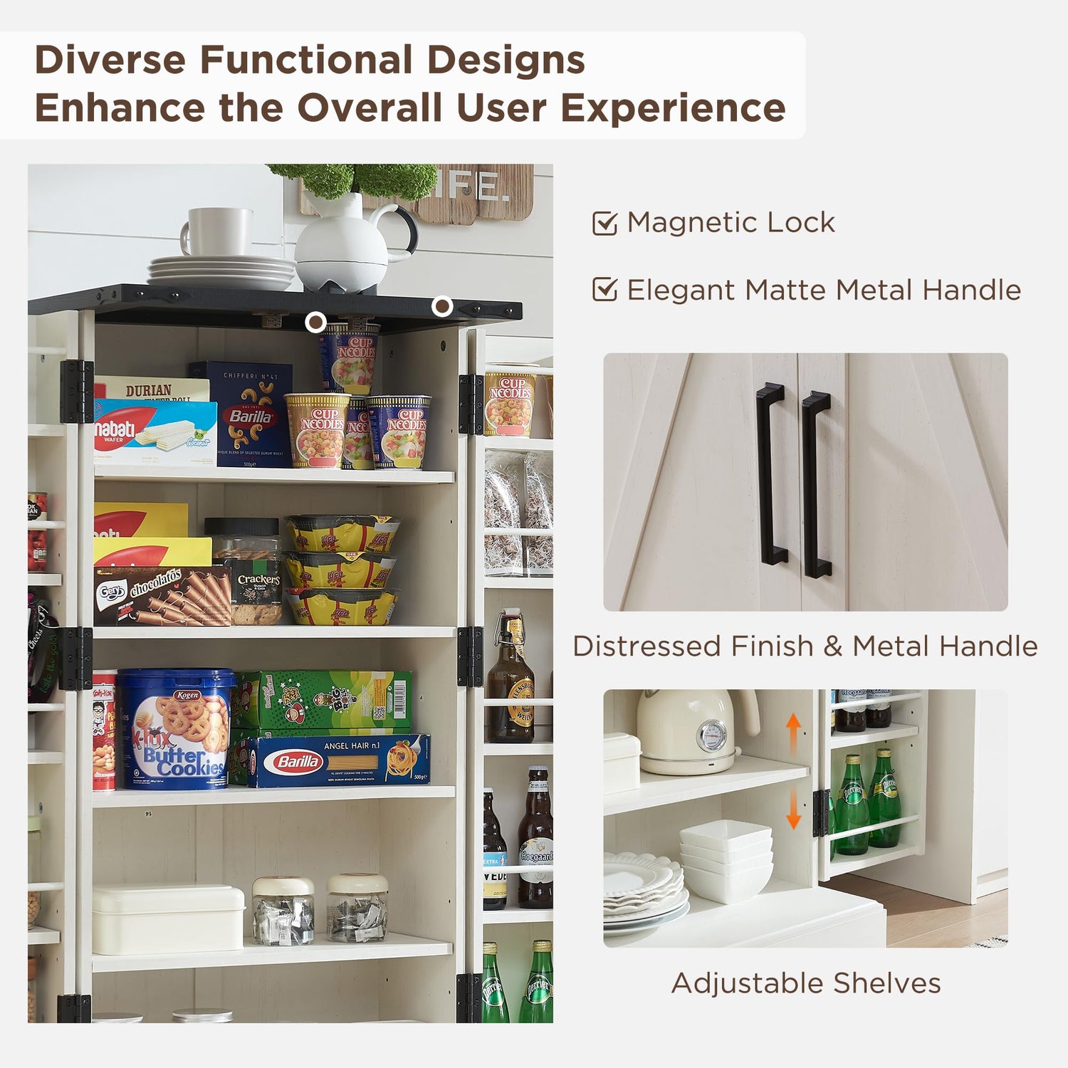 ACCOHOHO 47" Kitchen Pantry, Farmhouse Storage Cabinet with Barn Doors, Organizer and Adjustable Shelves, Rustic Wood Cupboard for Kitchen, Dining