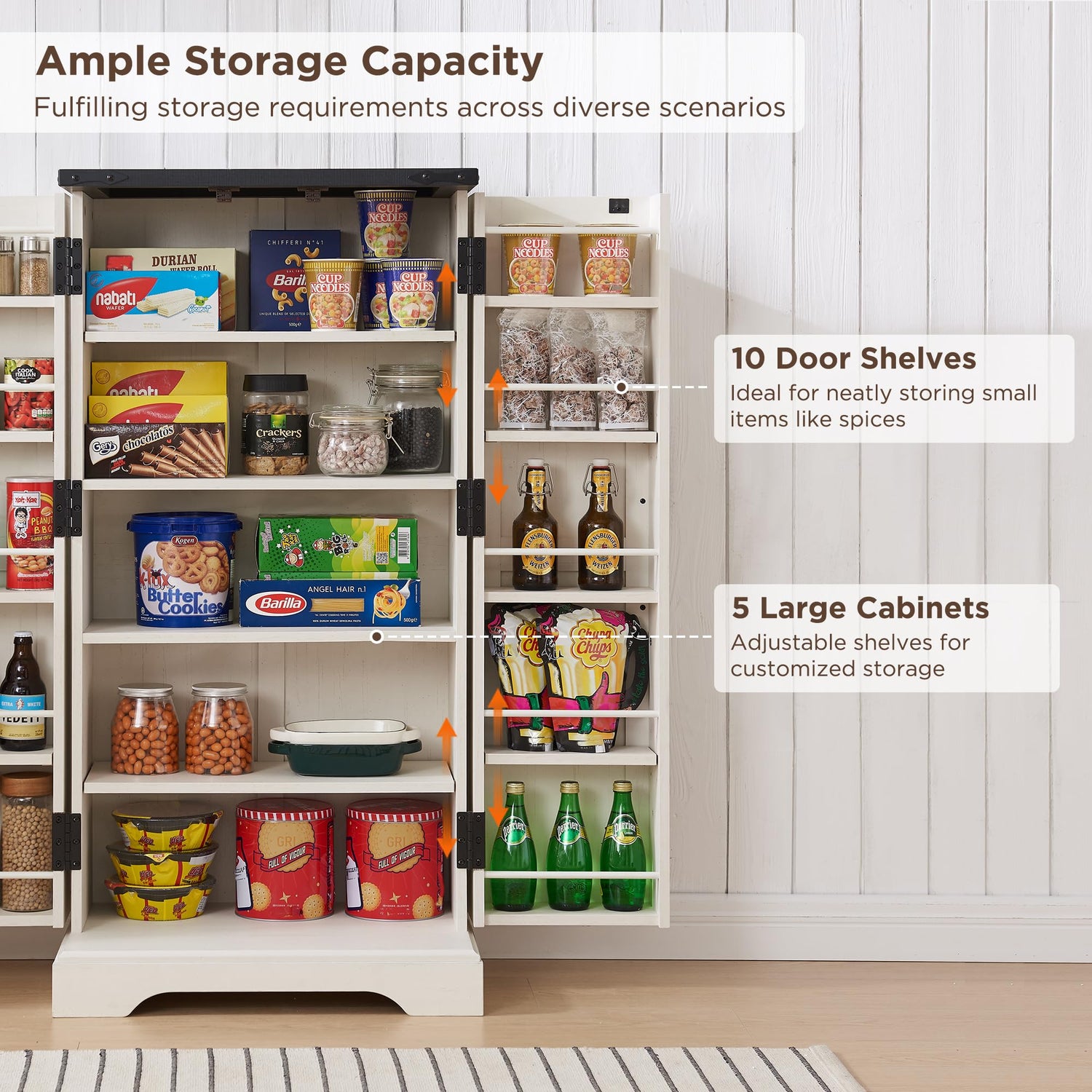 - Elevate Your Storage Experience: Immerse yourself in the thoughtful design and enduring functionality of the pantry. Designed with the user's needs in mind, its size fits in kitchens, bathrooms, hallways and anywhere, from small spaces to large spaces. The wide, coated metal handle not only offers a comfortable grip but also ensures durability for sustained use. Experience seamless access with the door's convenient magnetic lock, combining ease of use with a sleek, modern aesthetic.
