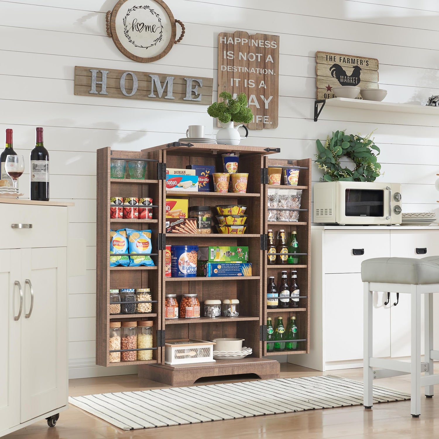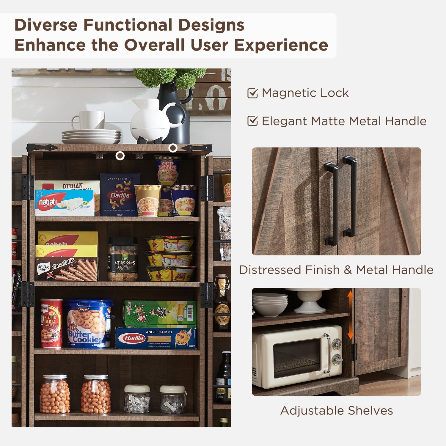 ACCOHOHO 47" Kitchen Pantry, Farmhouse Storage Cabinet with Barn Doors, Organizer and Adjustable Shelves, Rustic Wood Cupboard for Kitchen, Dining Room, Bathroom and Hallway, Rustic Brown