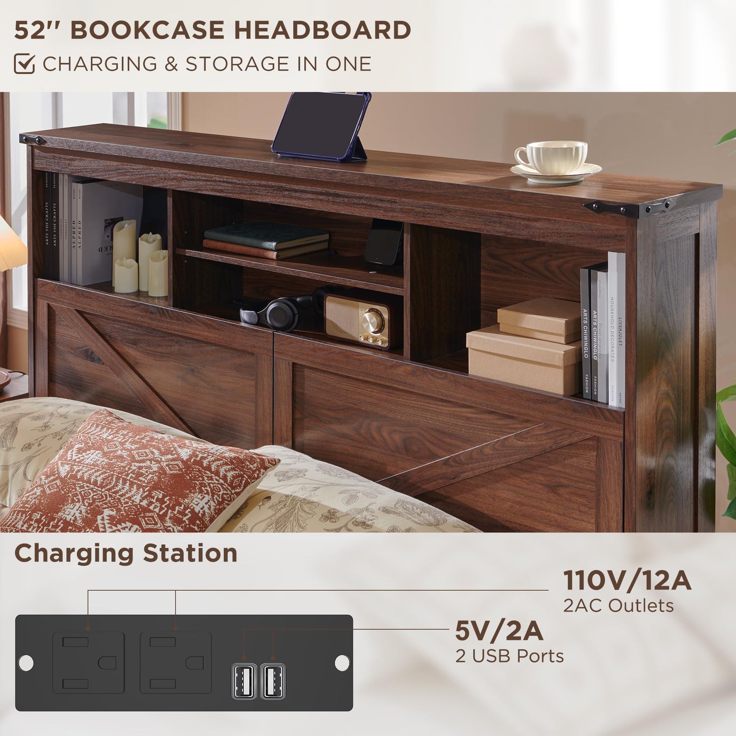 - 52" Tall LUXURY FARMHOUSE BED HEADBOARD: The carefully crafted 52" tall storage headboard bed frame makes it easier to sit up when you get up, reduces stress on your lower back and back, improves comfort, and increases extra storage space. With high quality faux solid wood texture, it is destined to be a high-end eye-catching piece of furniture in your bedroom.