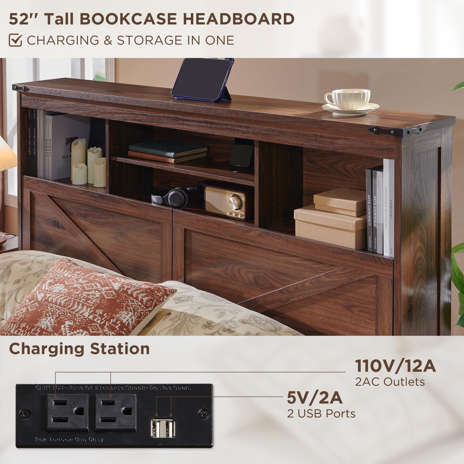 - [Luxury Farmhouse Wood Bed Frame]:With meticulously designed 52" tall storage headboard facilitates sitting up, relieves lower back stress, enhances comfort, and provide more storage space. Featuring high-quality imitation solid wood texture, it is sure to be the luxurious focal point of your bedroom.
