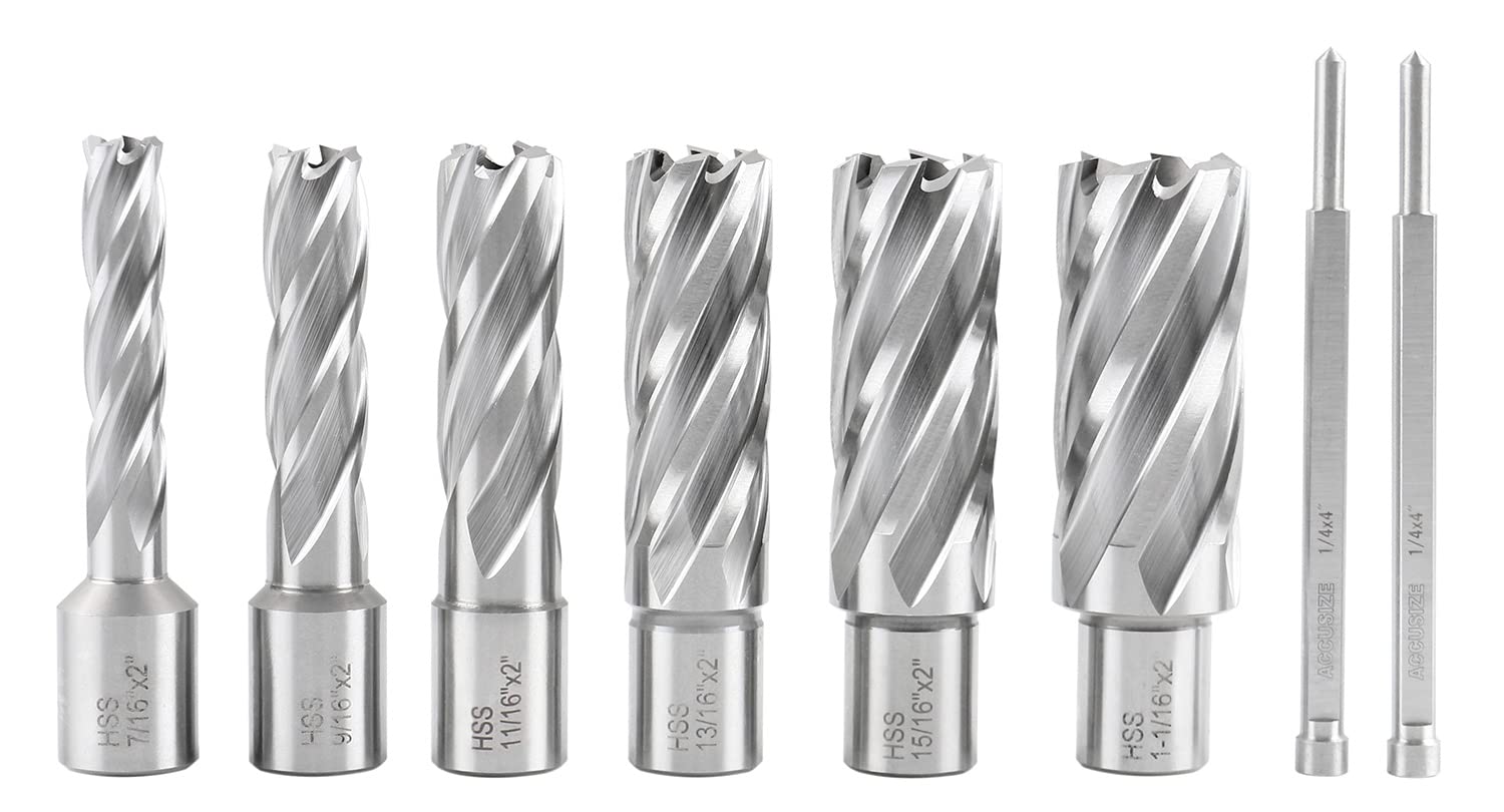 Accusize Industrial Tools Hss Annular Cutter Set, 2'' Cutting Depth, 7/16'' to 1-1/16'' Slugger Cutter, 8 Pcs/Set, HSS2-0000
