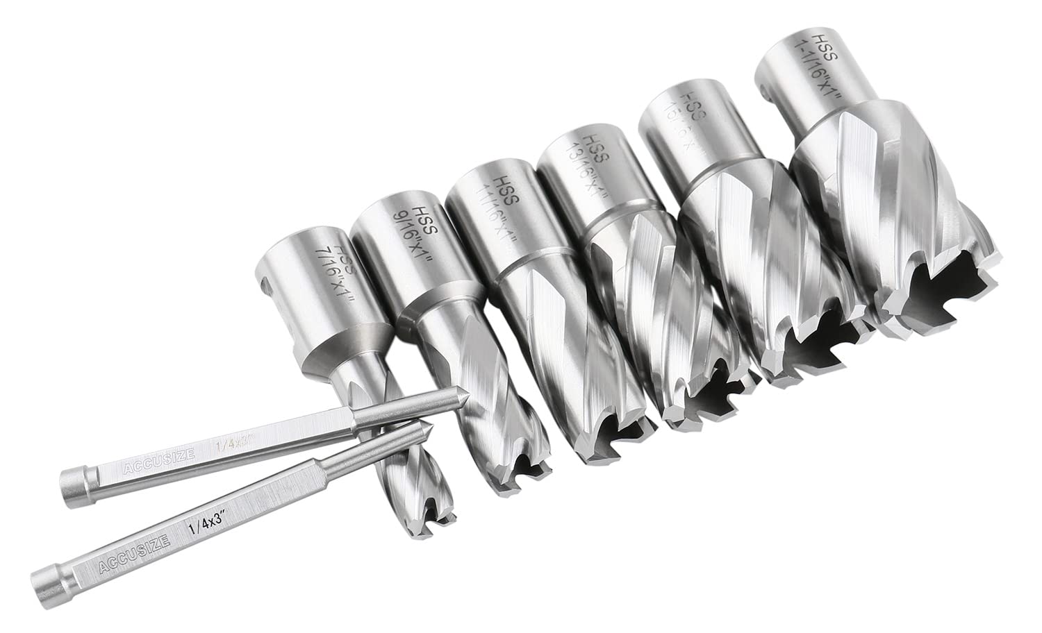 Accusize Industrial Tools Hss Professional Annular Cutter Set 1'' Cutting Depth, 7/16'' to 1-1/16'' with 3/4'' Weldon Shank, 8 Pc Set, HSS1-0000