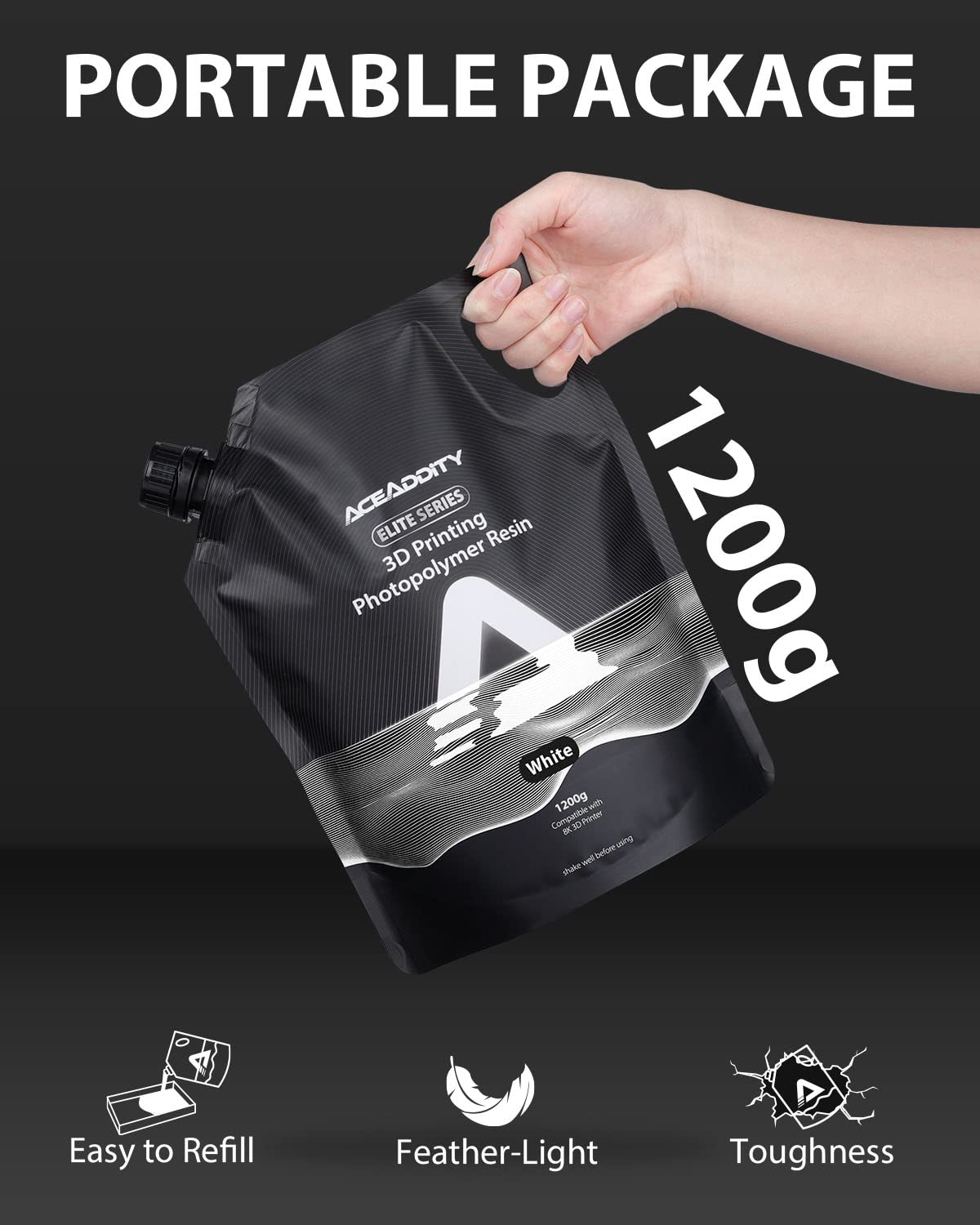 Aceaddity Elite Series 3D Printer Resin 405nm Photopolymer Resin LCD/DLP UV-Curing High Precision 3D Printing Liquid Compatible with 8k 3D Printer (White, 1200g)