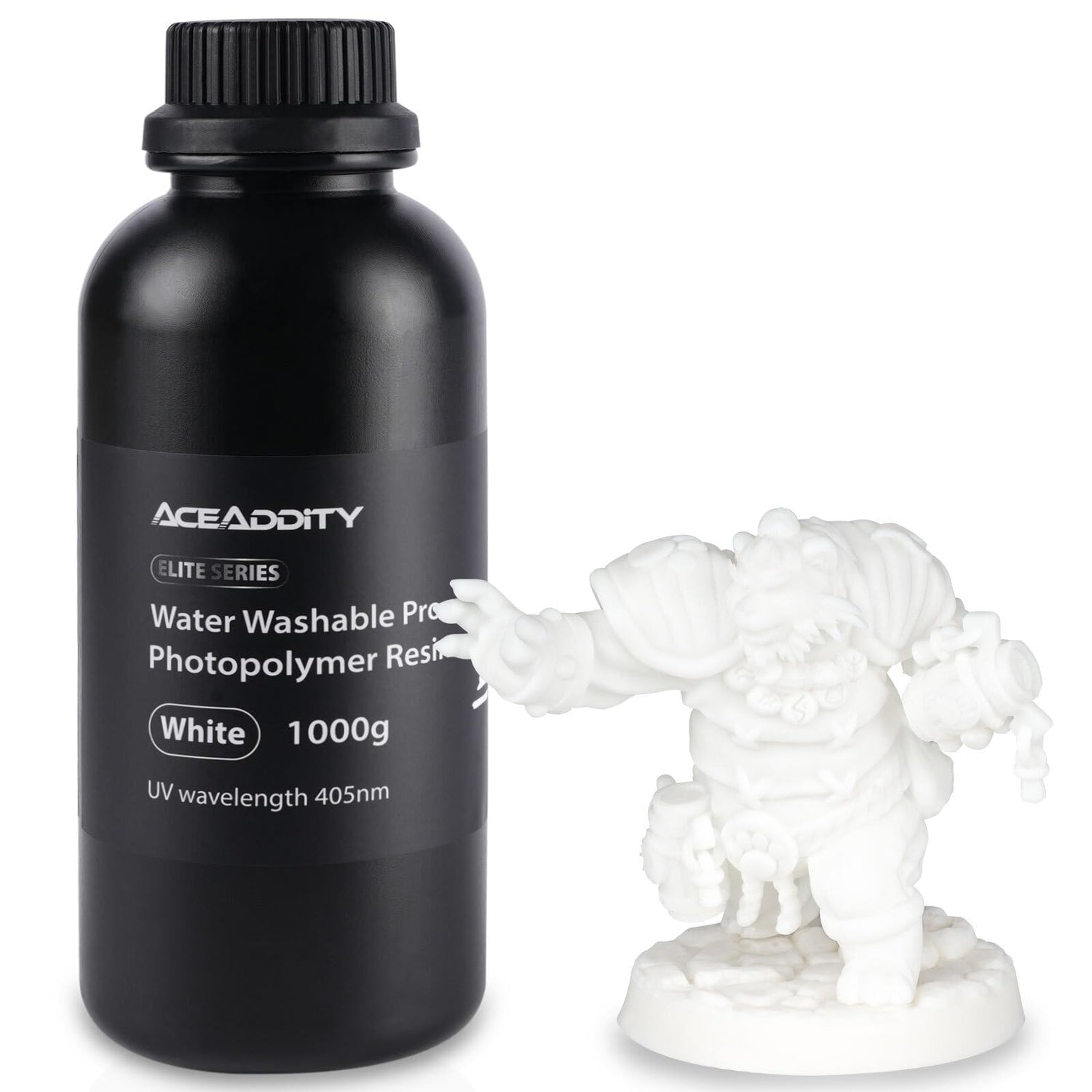 Aceaddity Water Washable Pro Resin - Low Shrinkage 3D Printer Resin, 405nm UV-Curing Water-Washable Photopolymer Printing Resin, High Precision & Easy to Clean (White, 1kg)