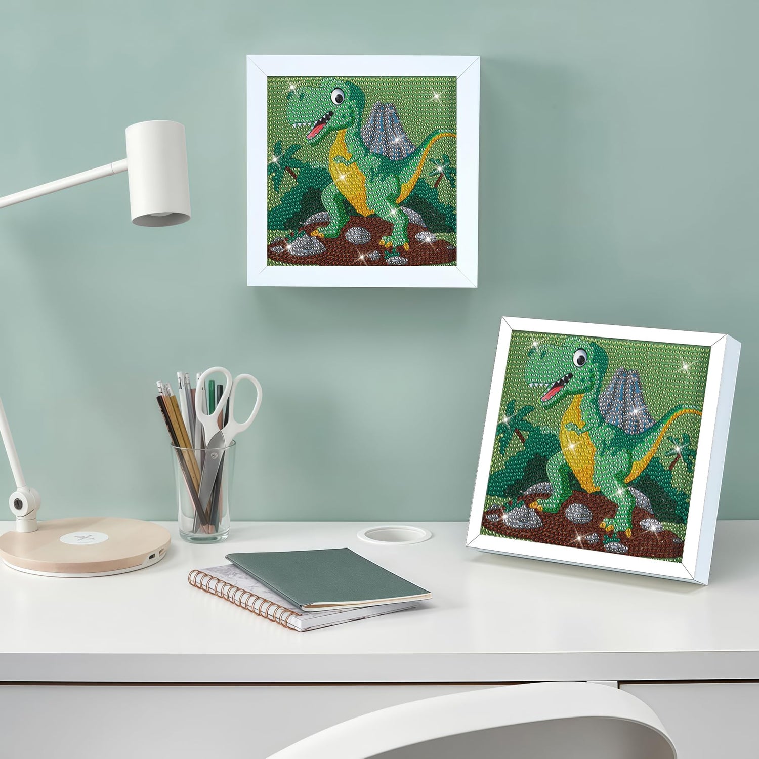 Acelii 5D Dinosaur Diamond Painting Kit for Kids with Frame,DIY Diamond Art Kit for Children Beginner,Cute Full Drill Diamond Dot Big Gem Art Kits,Home Wall Decoration 6X6 inch